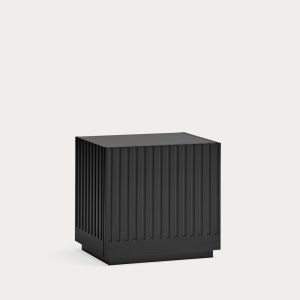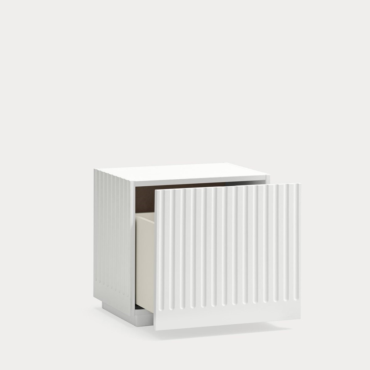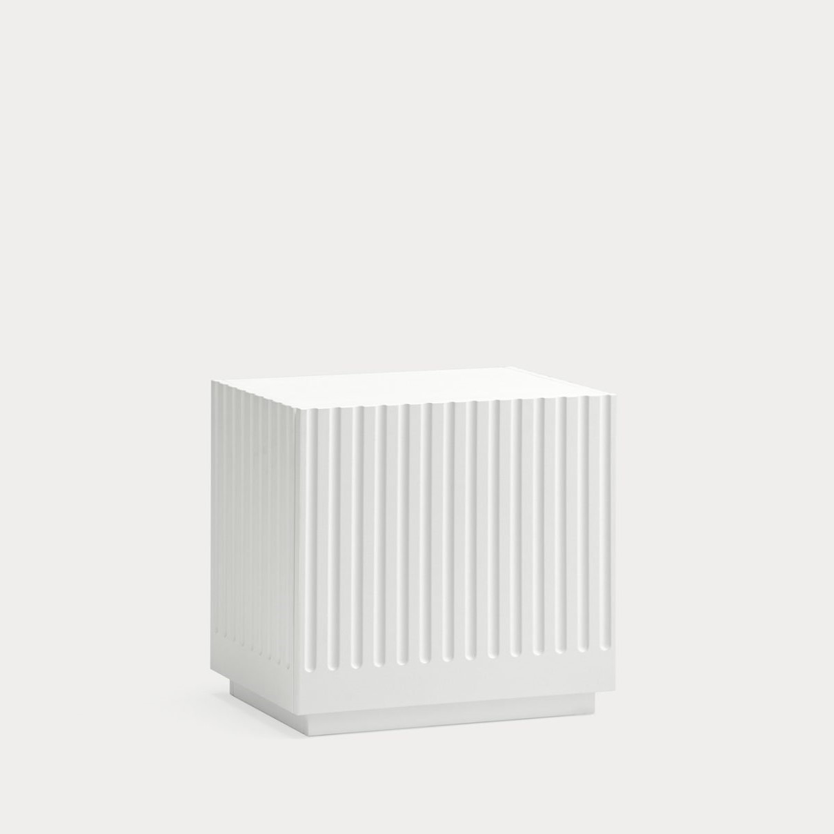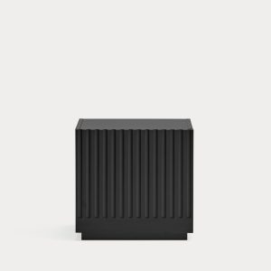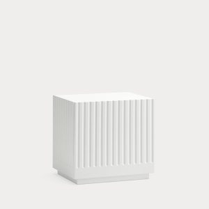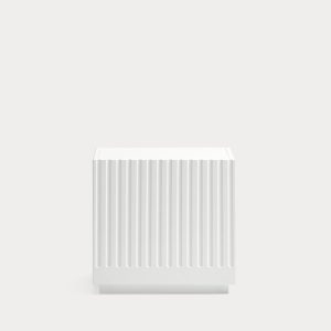 Mesita de noche Doric. La mesita de noche Doric es robusta, contundente y con unas líneas que nos recuerdan a la arquitectura de la Grecia clásica. Los surcos verticales y su gran presencia nos recuerda como estos clásicos buscaban la belleza y la proporcionalidad en sus obras. Es una mesita de noche práctica dado su cajón de grandes dimensiones para almacenar de forma eficaz.