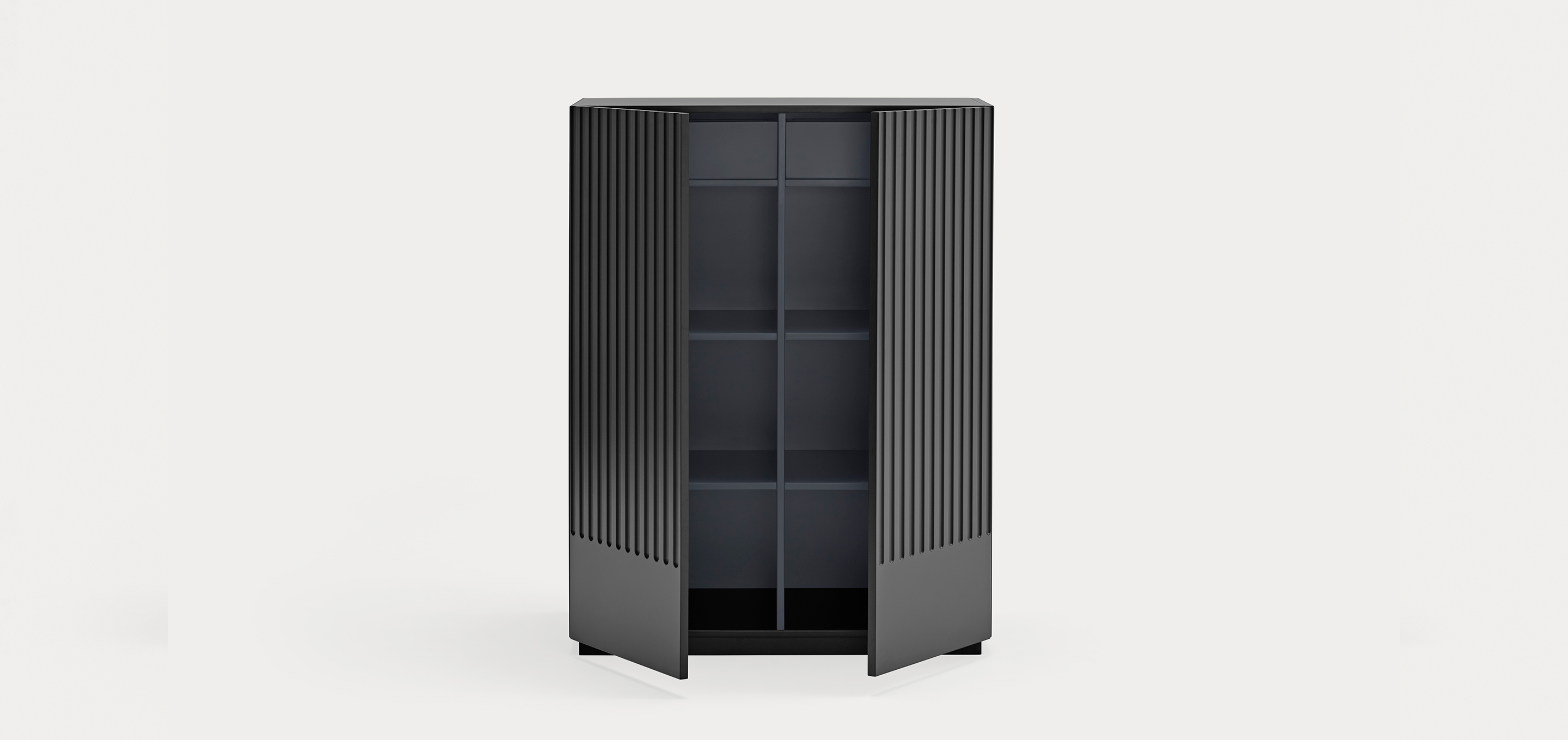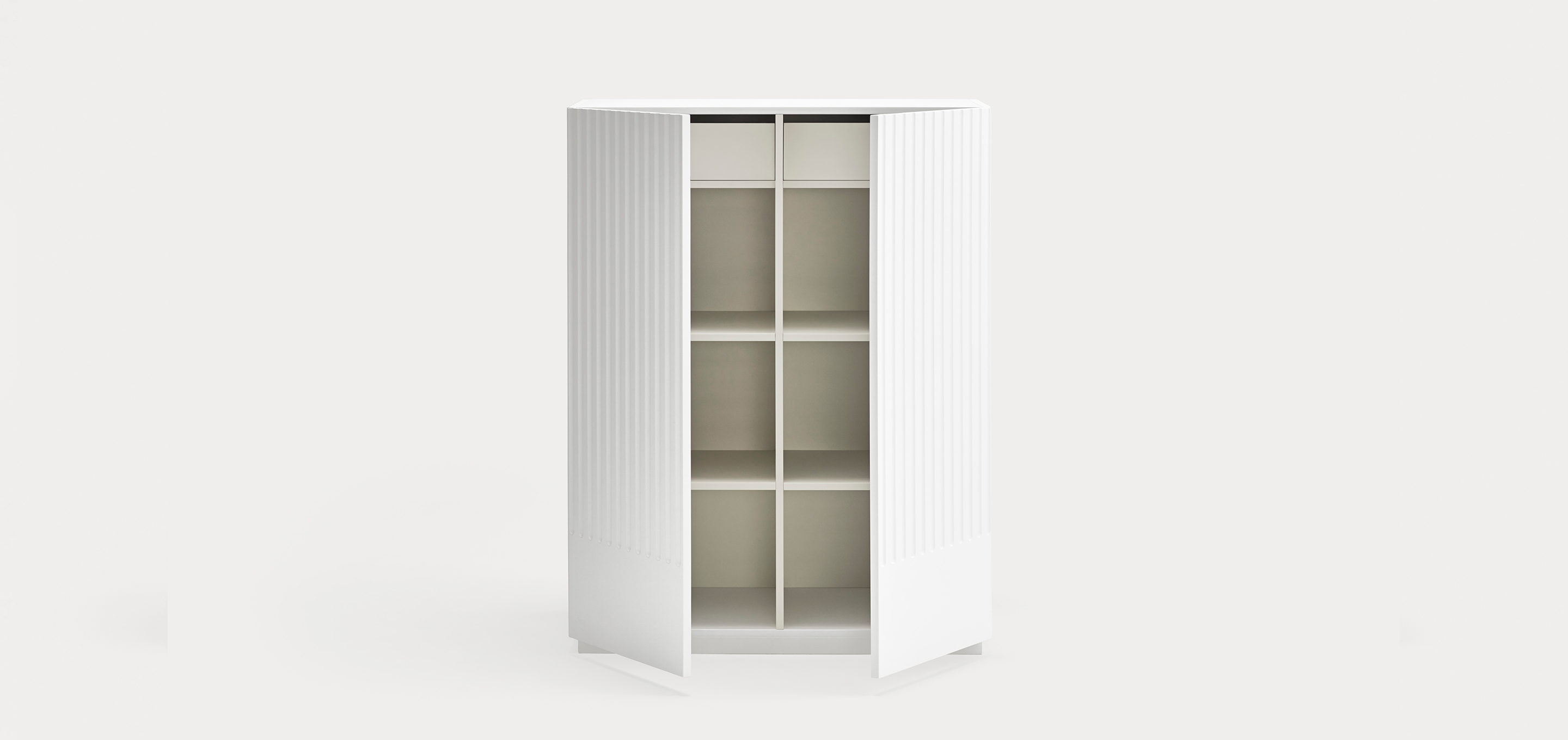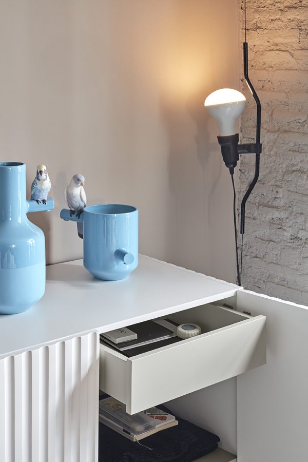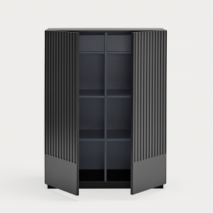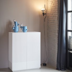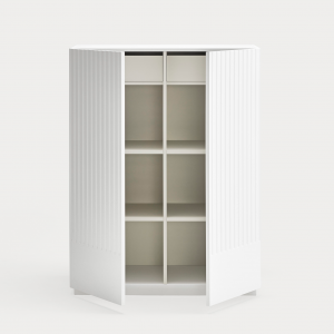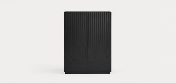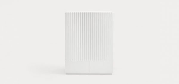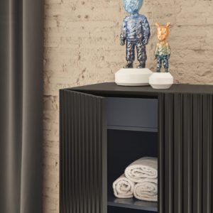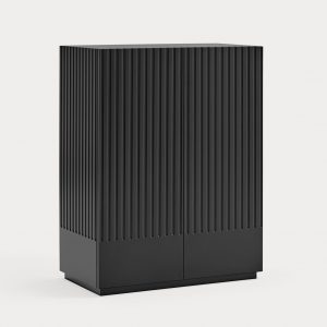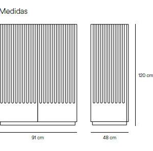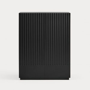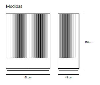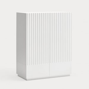 Mueble auxiliar Doric. El mueble auxiliar Doric es grande, robusto y con unas líneas que nos recuerdan a la arquitectura de la Grecia clásica. Los surcos verticales y su gran presencia nos recuerda como estos clásicos buscaban la belleza y la proporcionalidad en sus obras. Es un mueble práctico que da soporte al almacenaje del hogar, de 1 metro 20 cm de alto, con dos cajones y zonas diáfanas de almacenaje suficientemente grandes para guardar todo tipo de objetos.