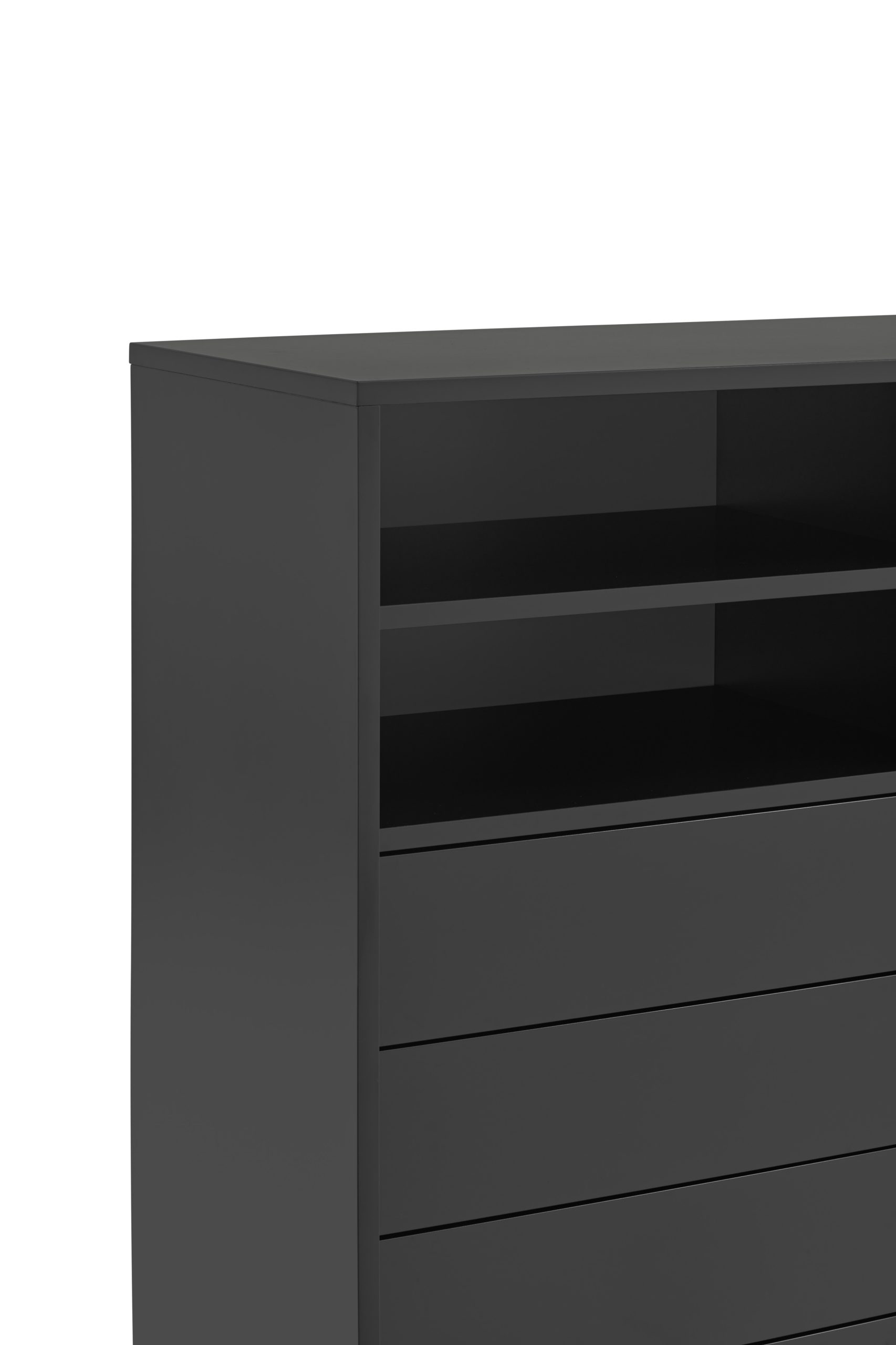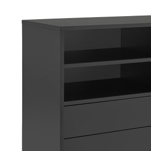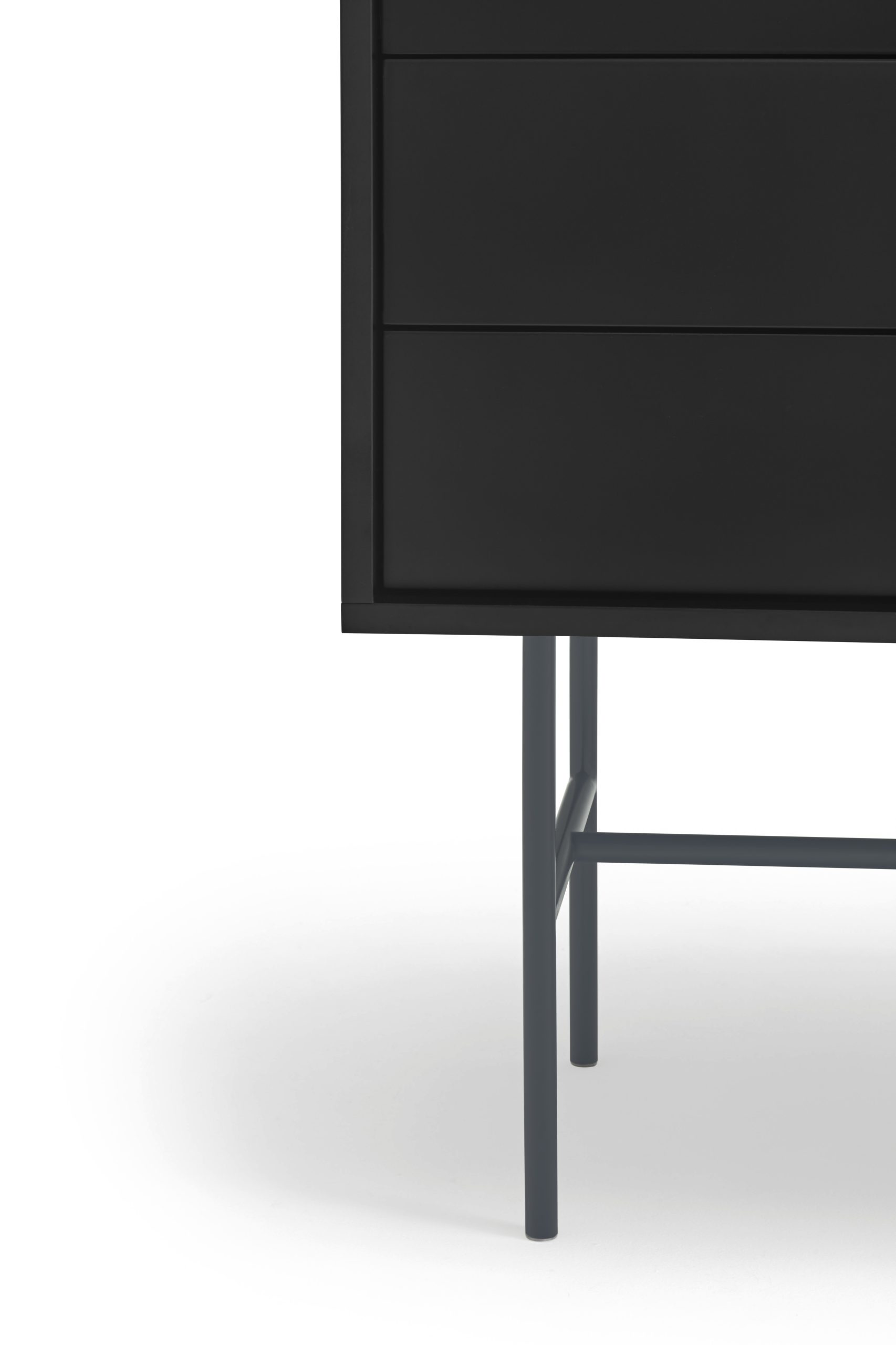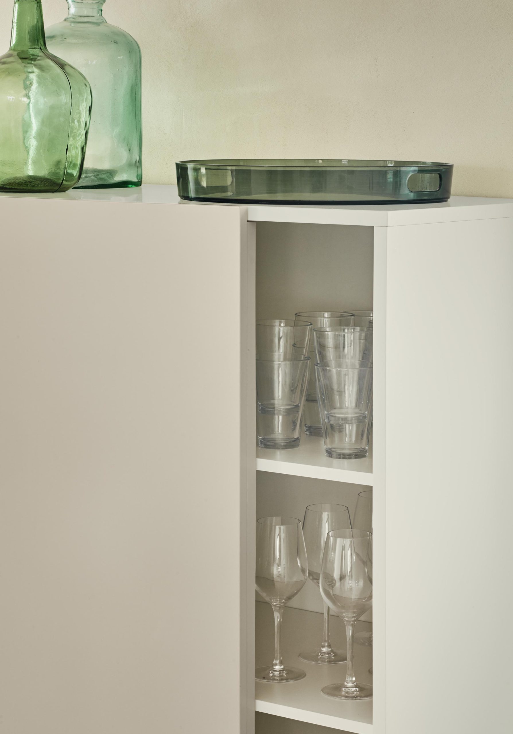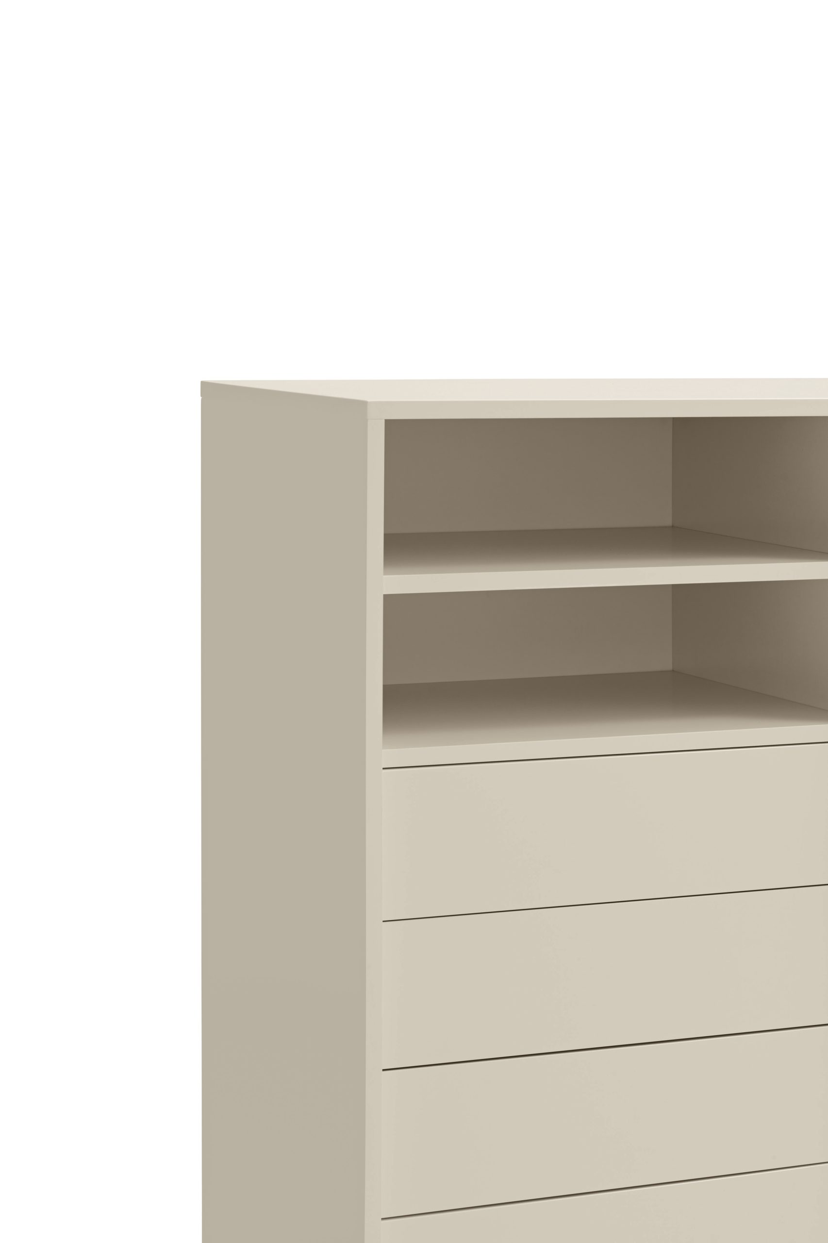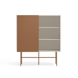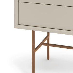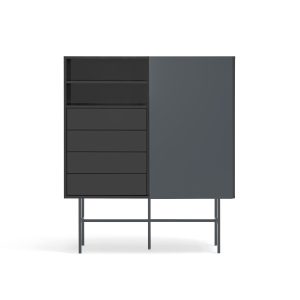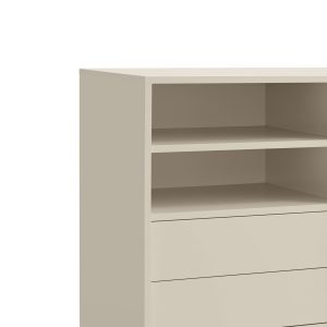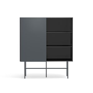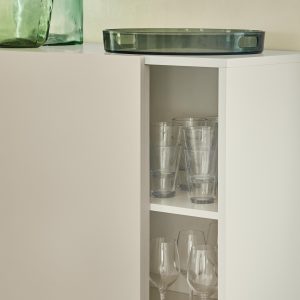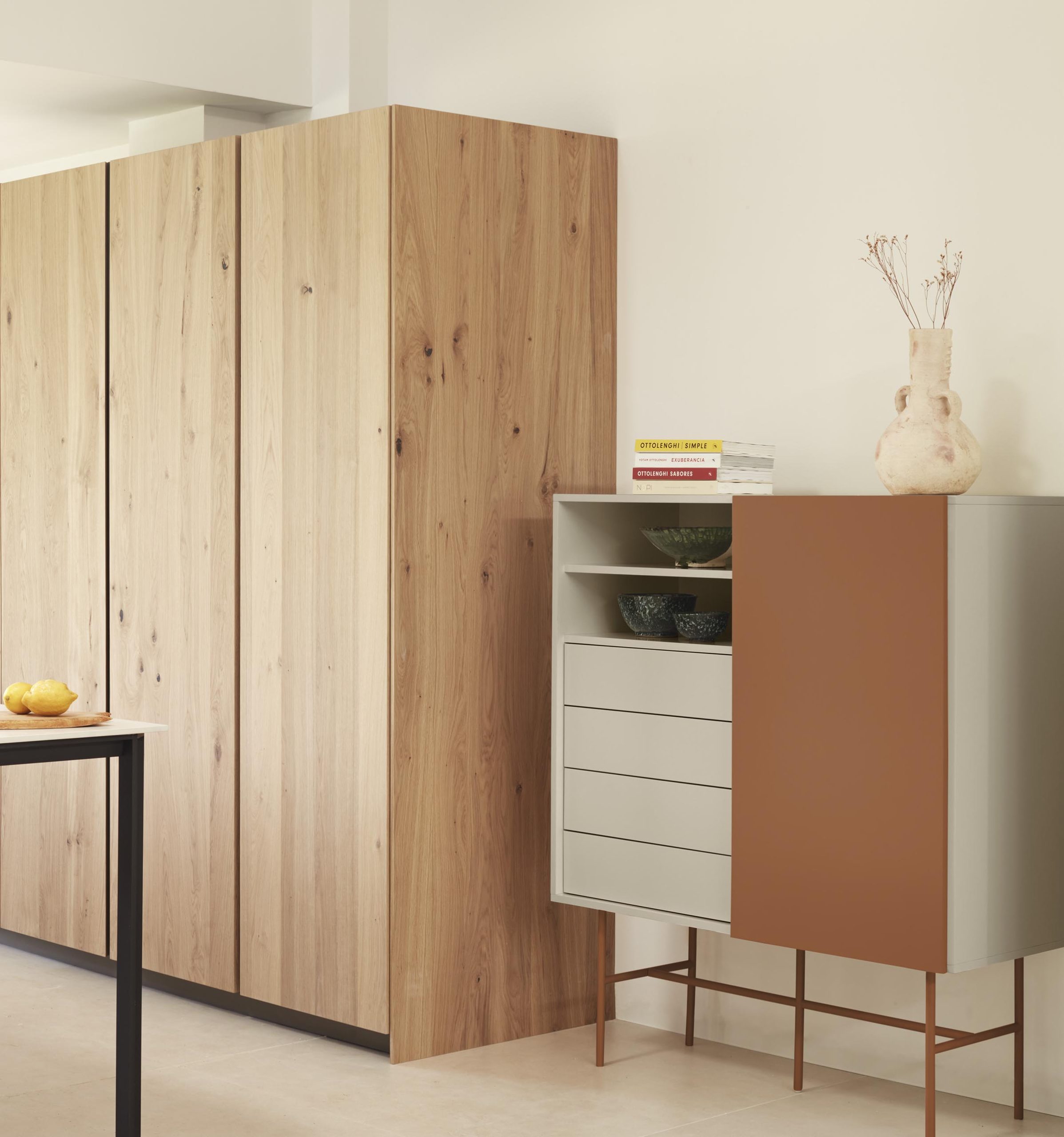 Mueble cómoda Nube. El Mueble auxiliar Nube forma parte de una nueva colección de Teulat. Una colección versátil y de tendencia con una combinación de colores adaptable a diferentes estilos. La colección Nube destaca por su configuración única y distintiva gracias a su puerta corredera, la cual permite ser colocada libremente según las preferencias de cada uno. La forma en la que esta puerta desliza sobre el auxiliar Nube, revelando y ocultando las distintas secciones de su interior, está inspirada en cómo las nubes se desplazan en el cielo. Una cómoda de dimensiones perfectas para adaptarse a cualquier espacio y necesidades ya que dispone de 4 cajones, 2 baldas y una puerta corredera que oculta 3 nichos.