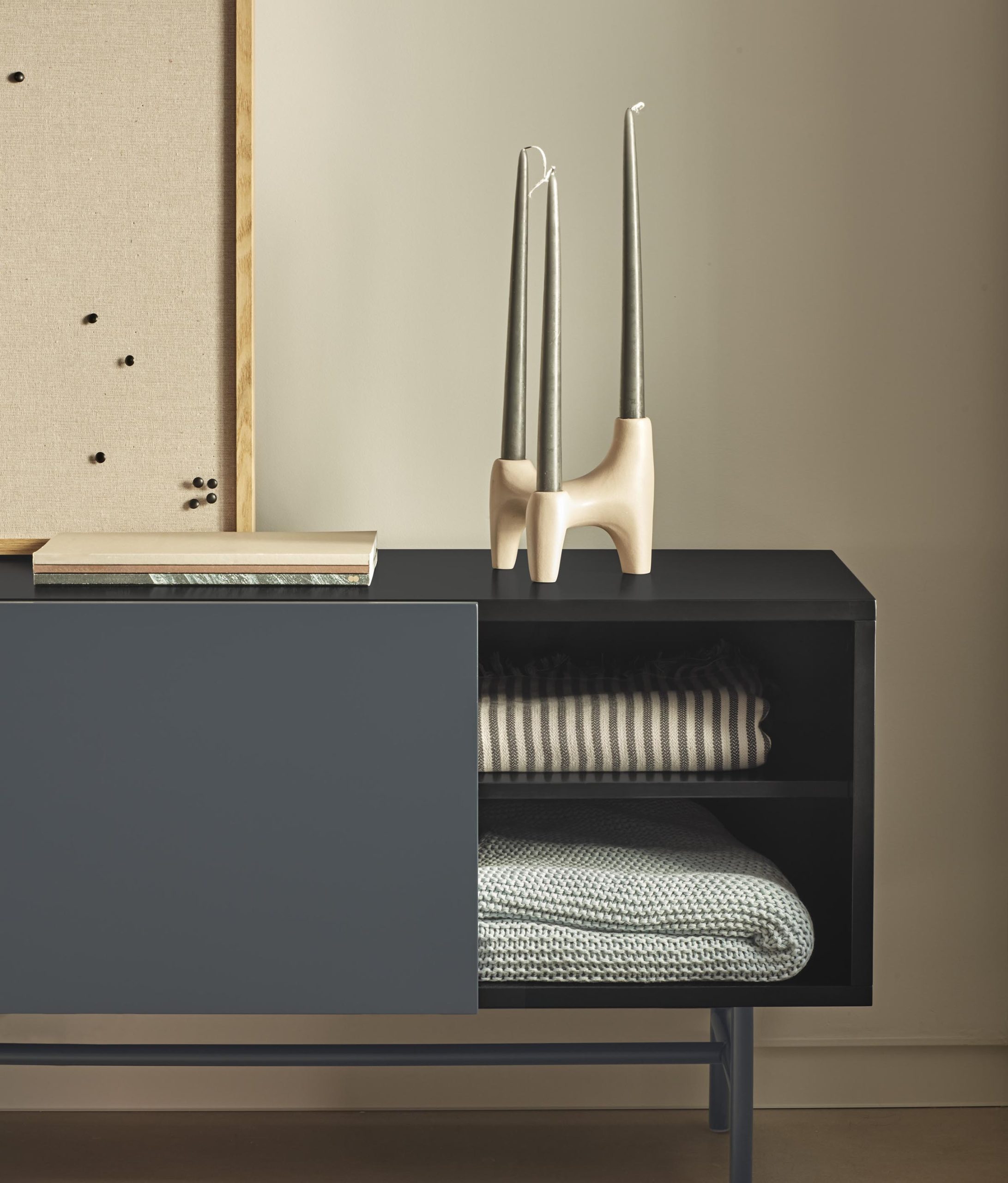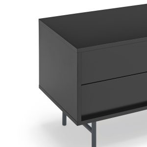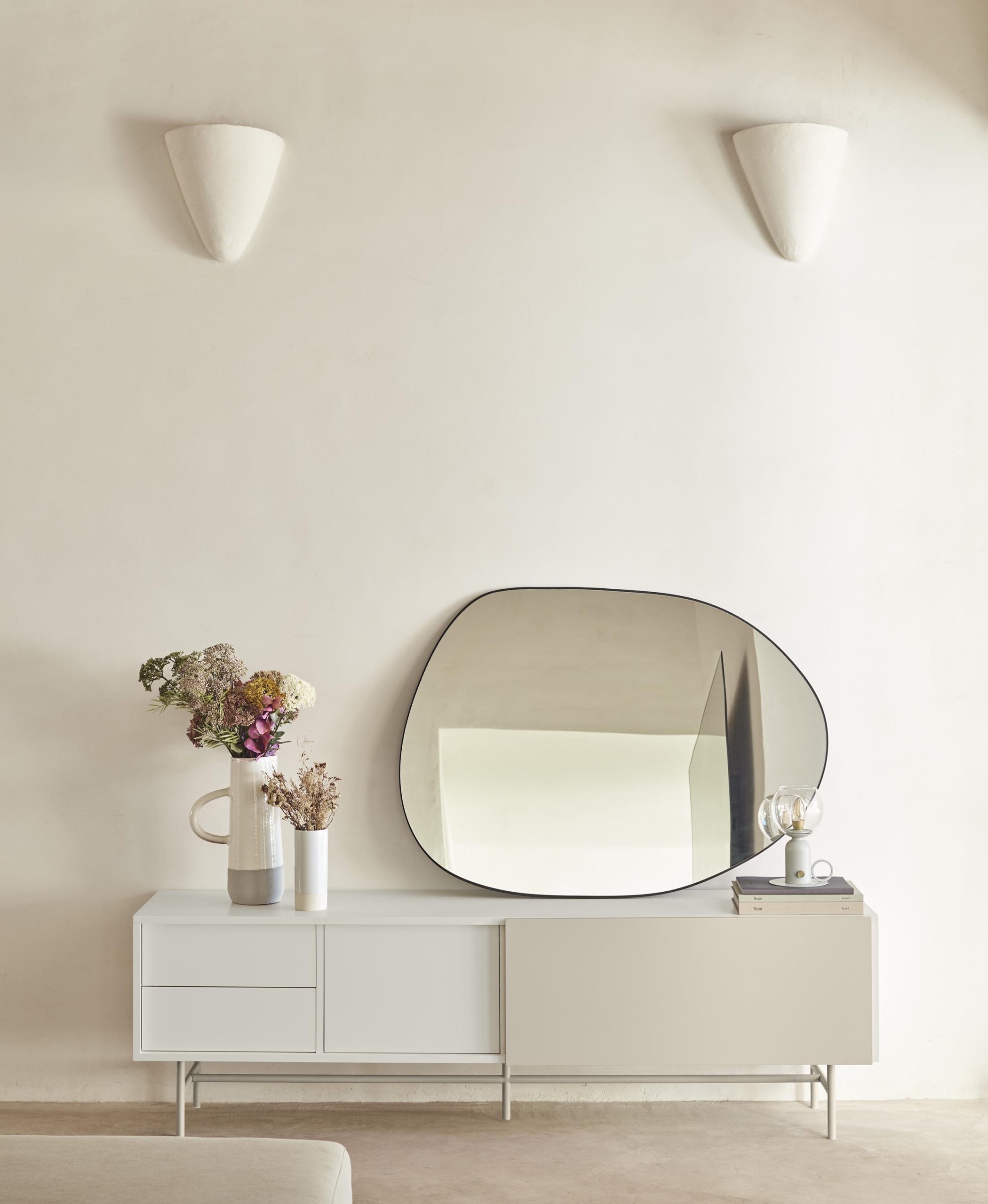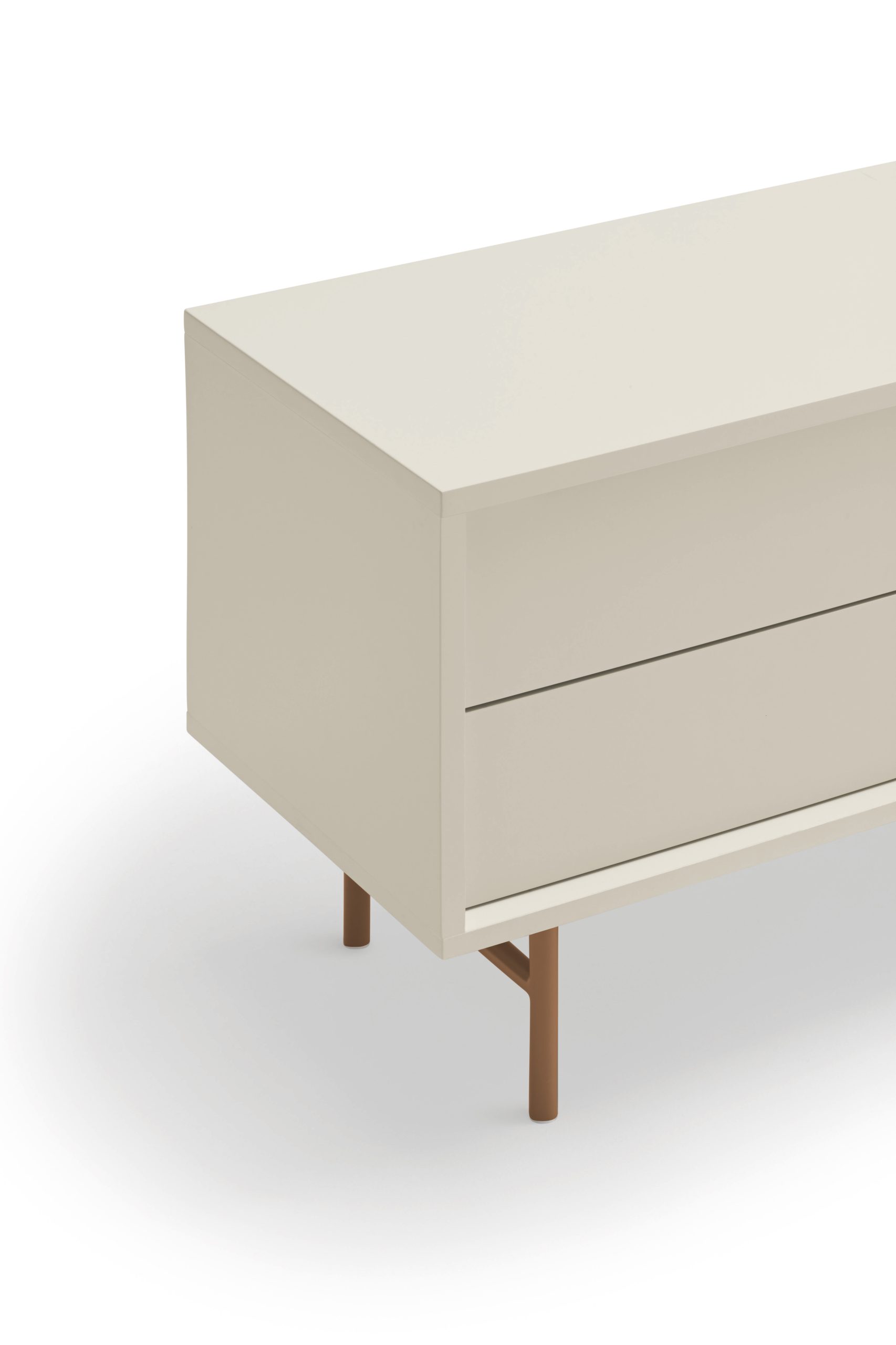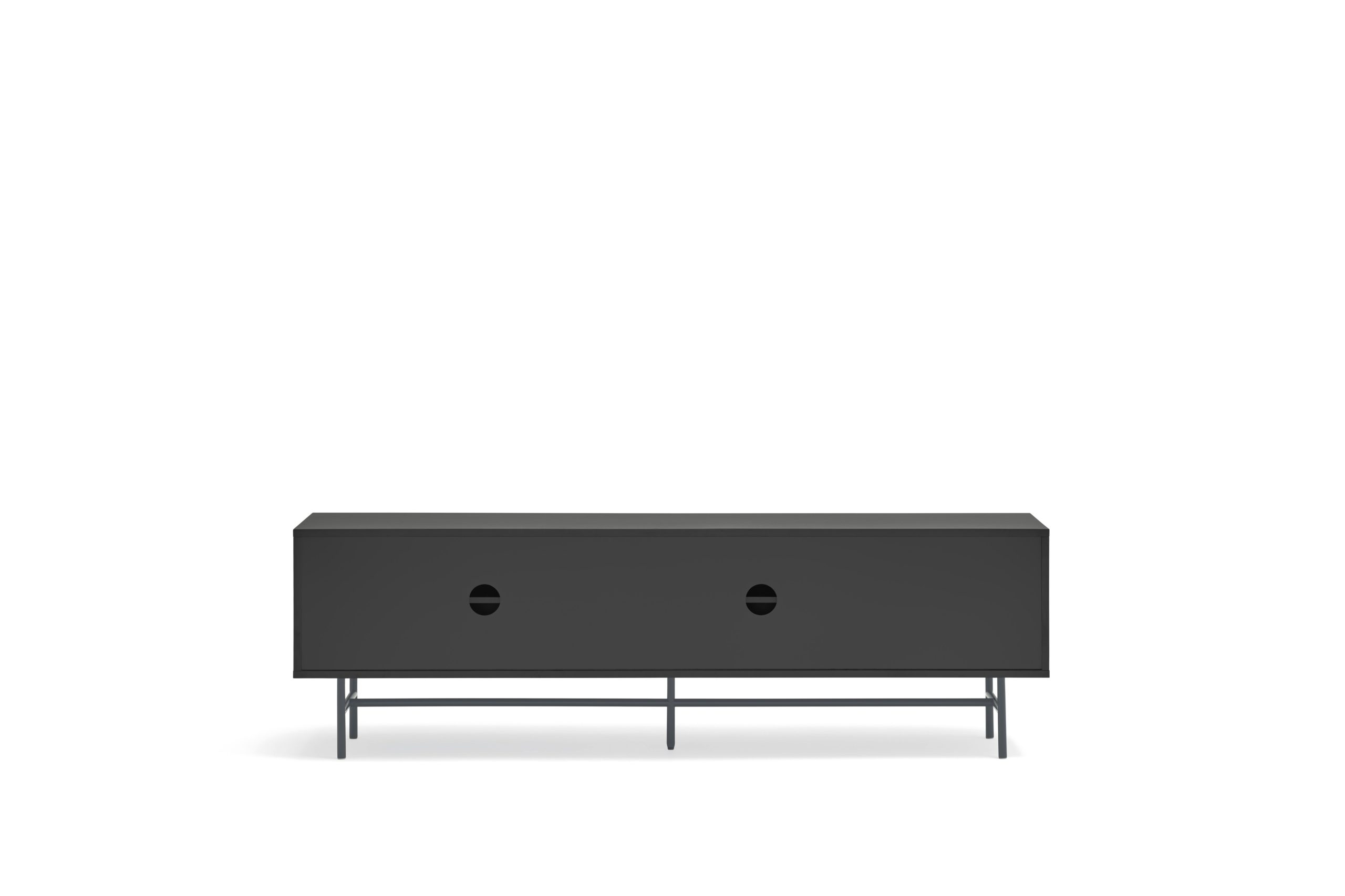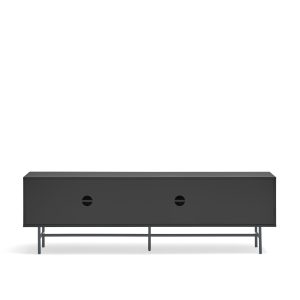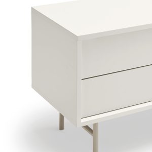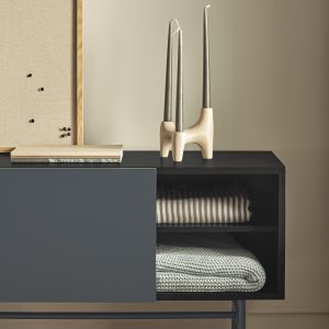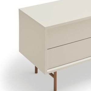 Mueble de TV Nube. El mueble de TV Nube forma parte de una nueva colección de Teulat. Una colección versátil y de tendencia con una combinación de colores adaptable a diferentes estilos. La colección Nube destaca por su configuración única y distintiva gracias a su puerta corredera, la cual permite ser colocada libremente según las preferencias de cada uno. La forma en la que esta puerta desliza sobre el auxiliar Nube, revelando y ocultando las distintas secciones de su interior, está inspirada en cómo las nubes se desplazan en el cielo. Un mueble de TV de dimensiones perfectas para adaptarse a cualquier espacio y necesidades ya que dispone de 2 cajones, una puerta y una puerta corredera que oculta 2 nichos perfectos para ocultar aparatos. Además dispone de un pasacables en su parte posterior.