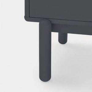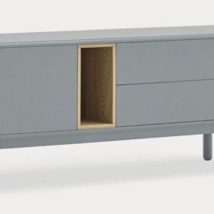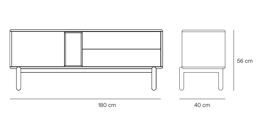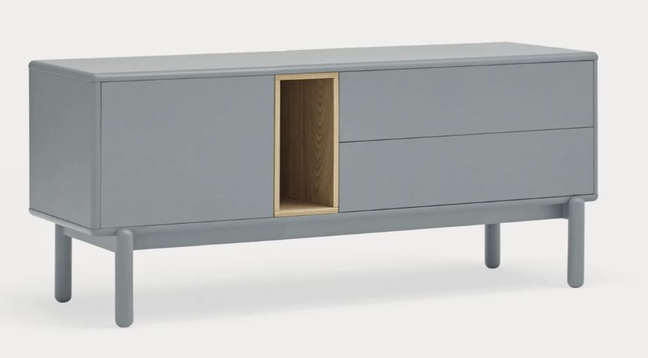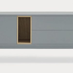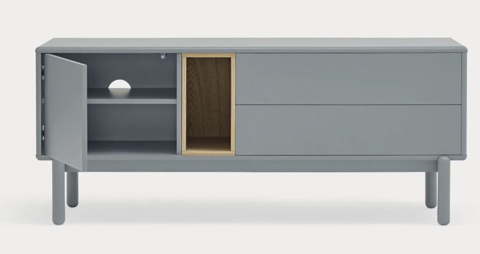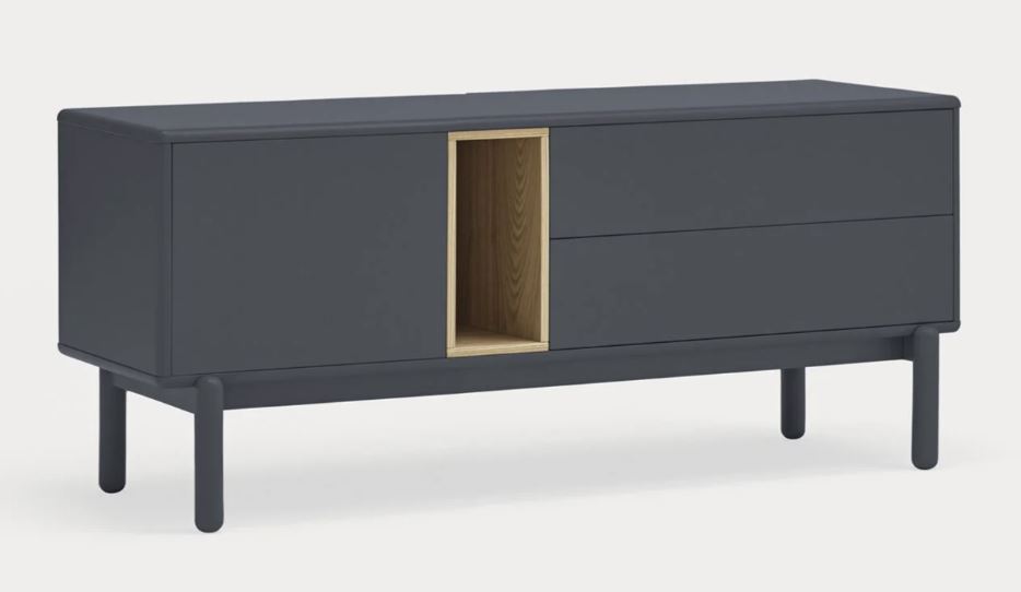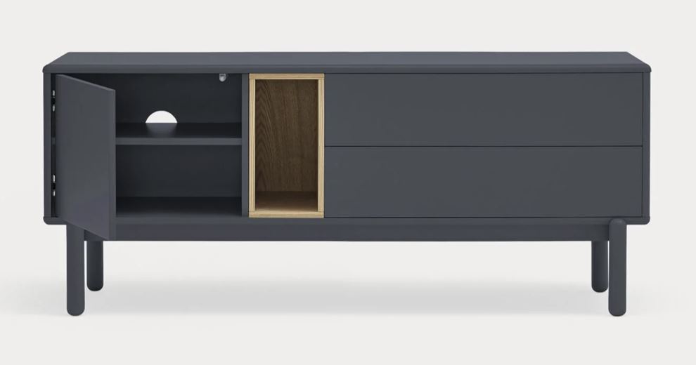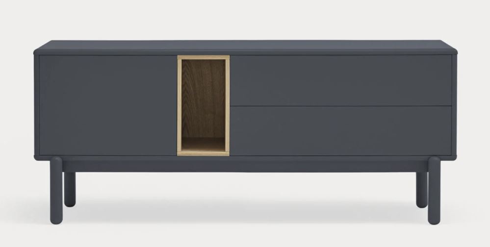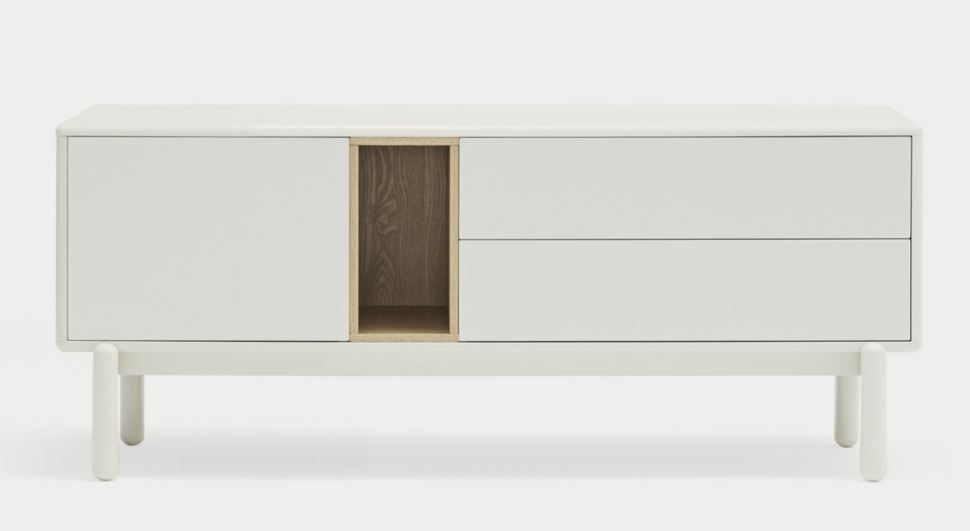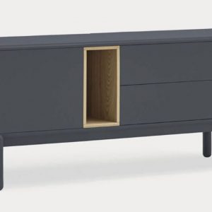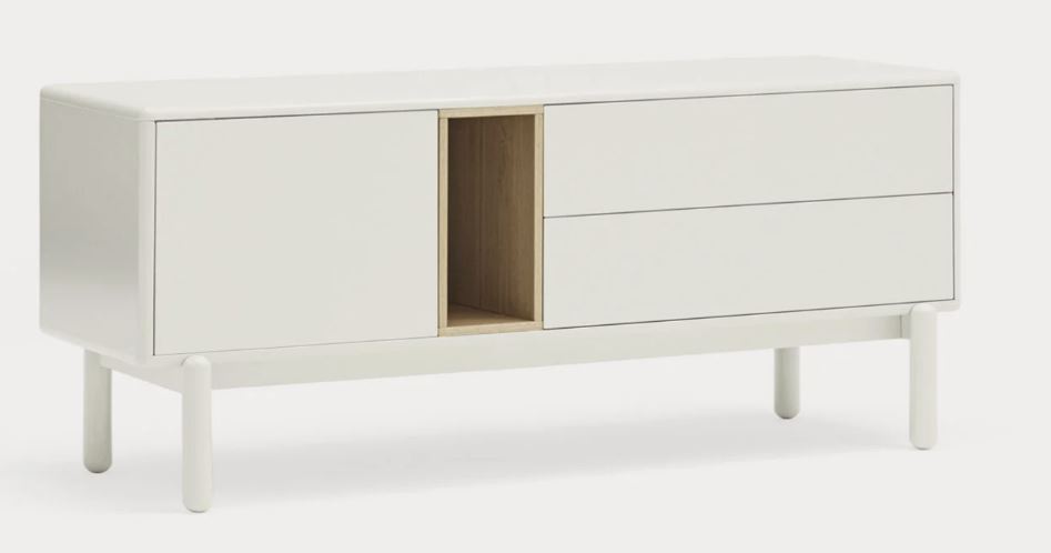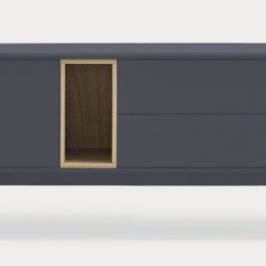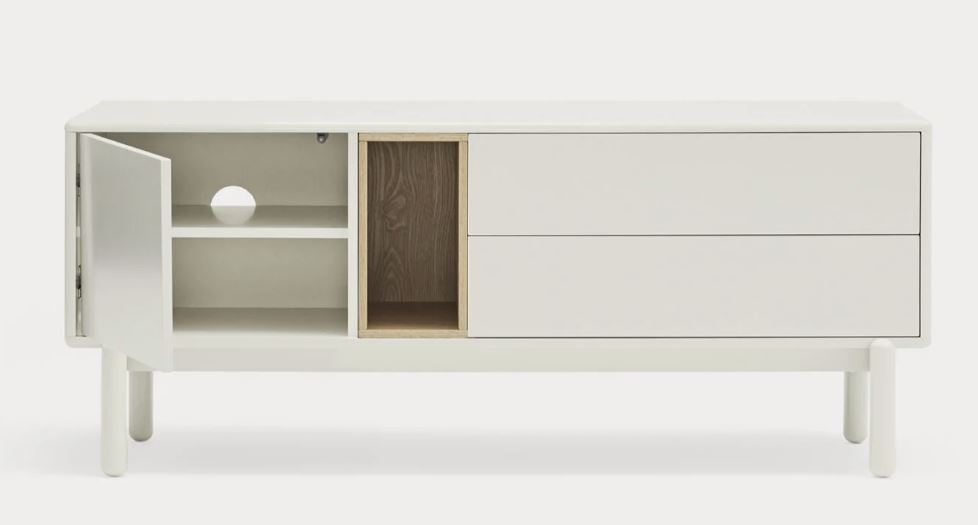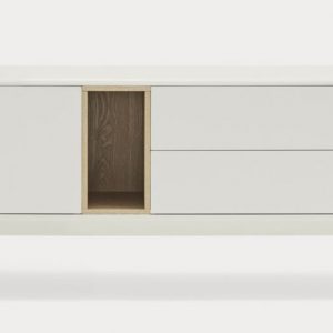 Mueble Tv Corvo II. La silueta redondeada del mueble TV Corvo hace que sea una colección de aspecto suave y voluminoso. En la colección Corvo todas las piezas queden integradas de manera precisa sin necesidad de piezas extra, generando un aspecto mucho más limpio y cuidado. Corvo está realizado en MFD lacado a excepción del nicho, chapado en roble.