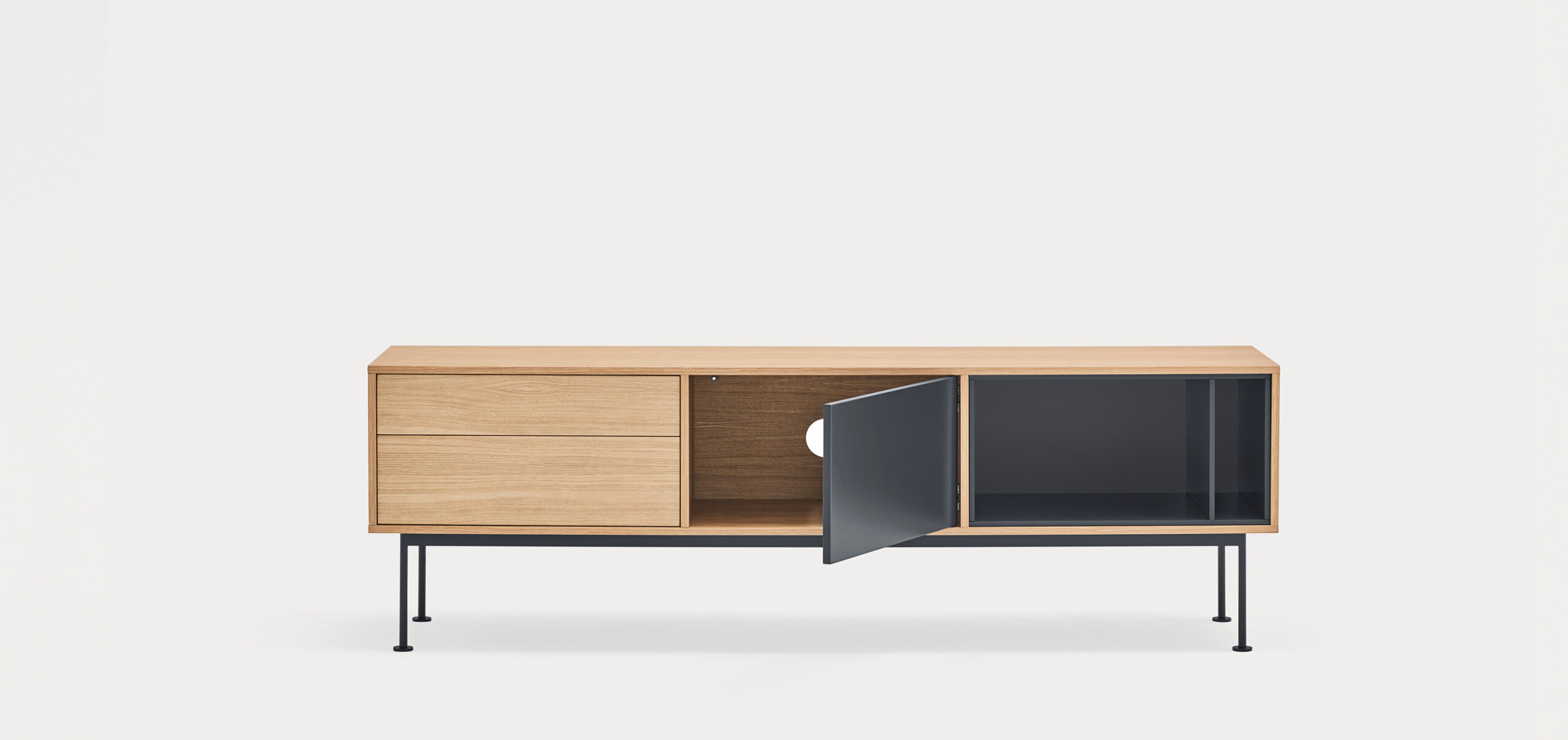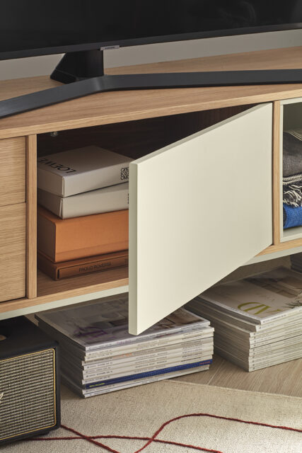 Mueble Tv Yoko. La colección Yoko trata de ofrecer una opción sencilla y moderna de almacenaje a través de una colección sencilla, de líneas rectas y un diseño destacablemente ligero.