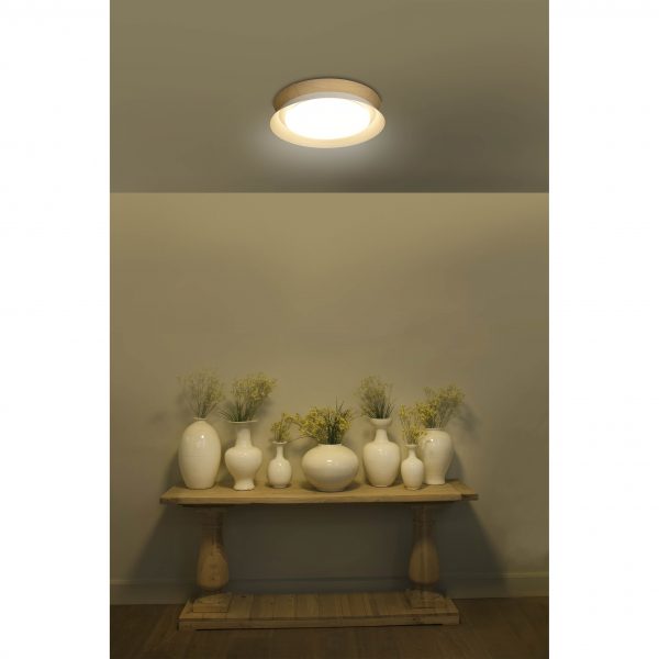APLIQUE DE TECHO TENDER LED. TENDER LED es un plafón blanco moderno y elegante, pero también sobrio y atemporal con el que podrá iluminar su hogar. TENDER proporciona una luz uniforme perfecta. El toque de madera lo hace destacar y aporta calidez a su diseño y estética.