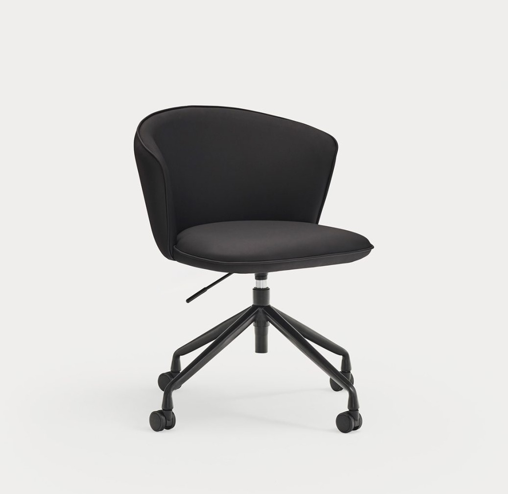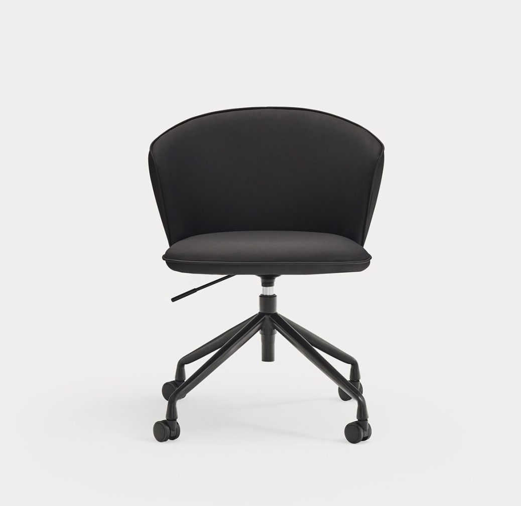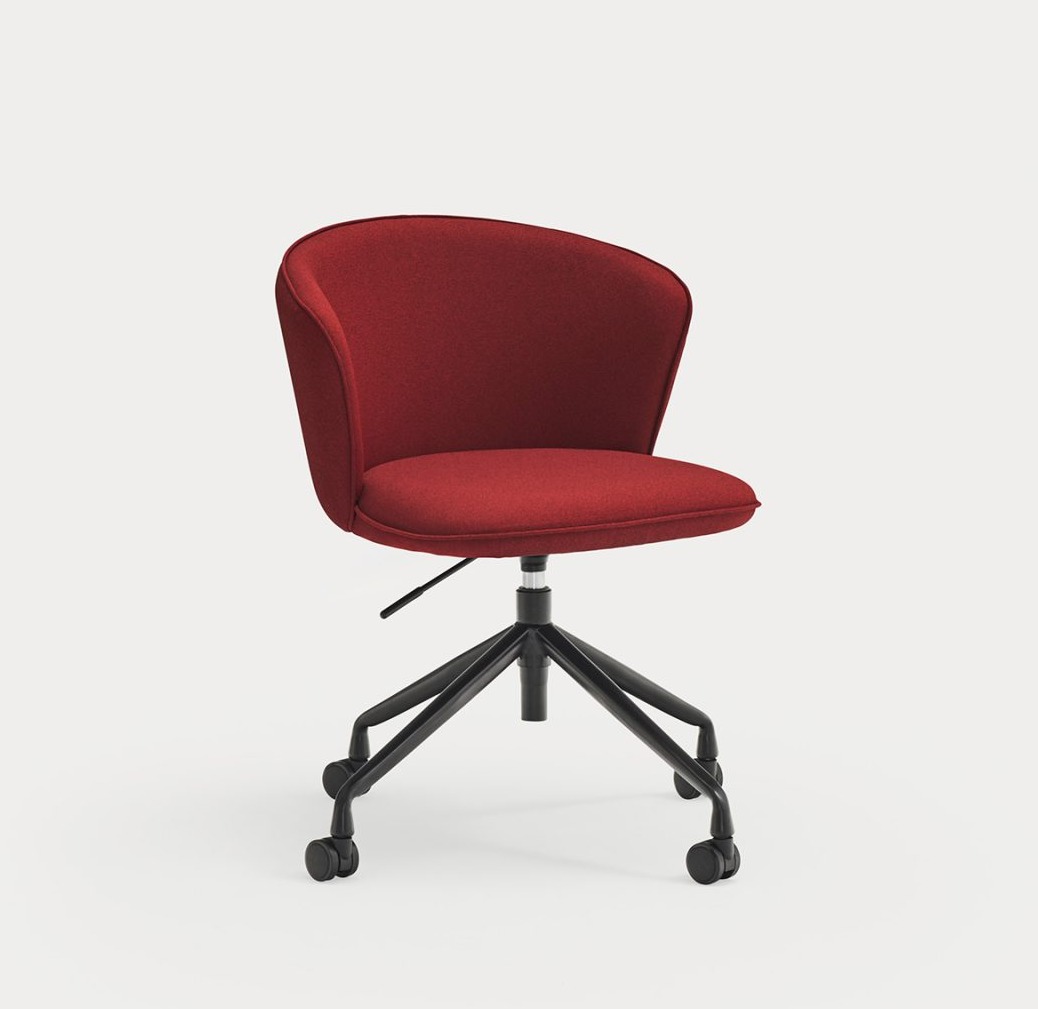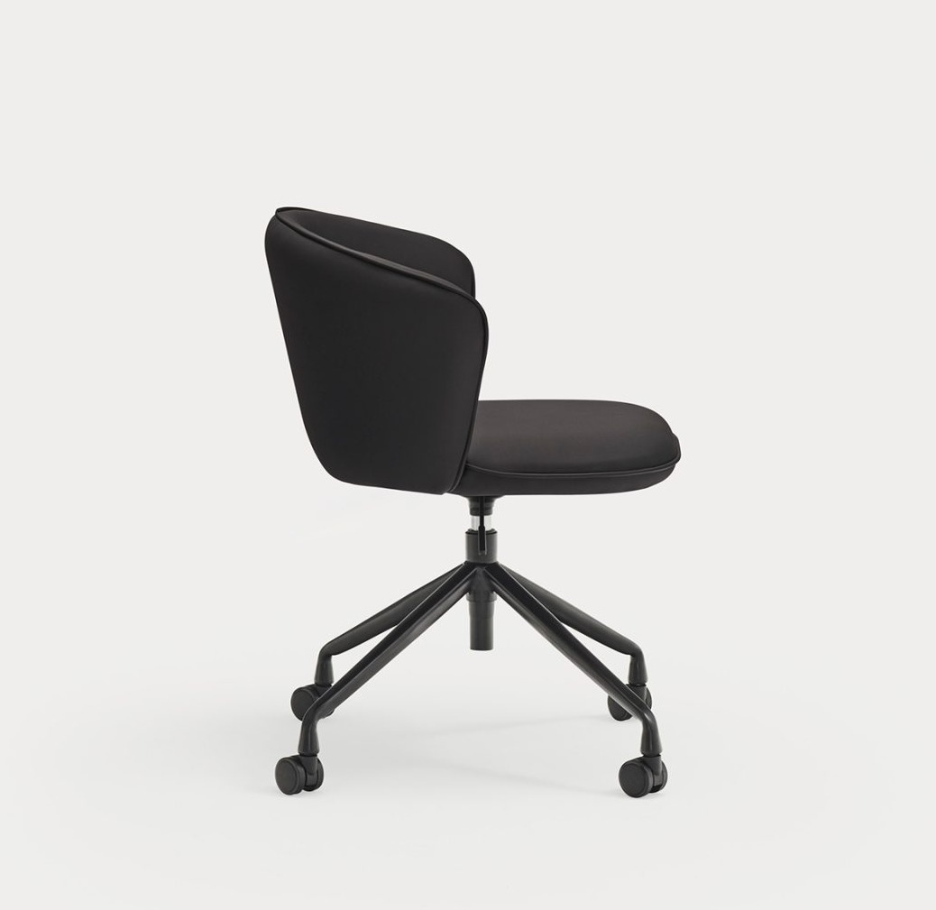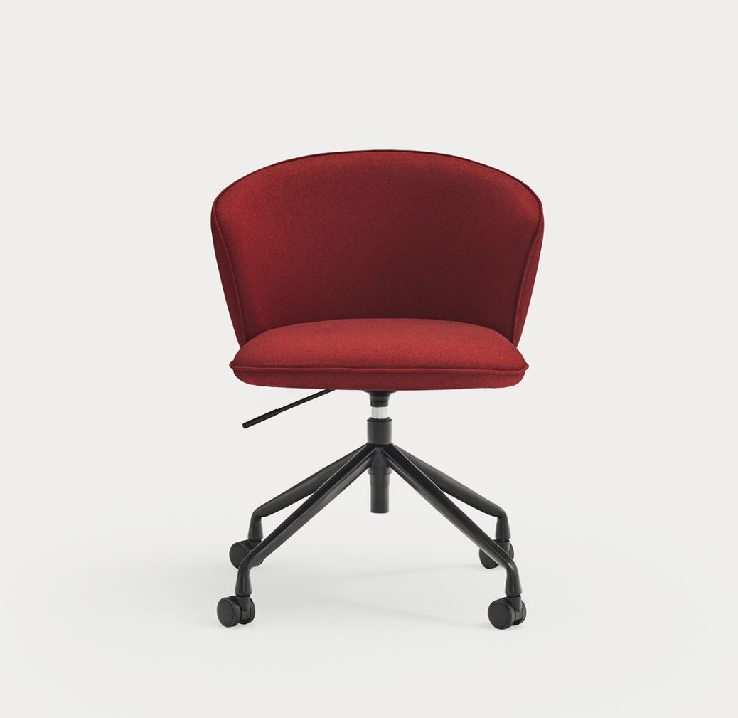 Silla de oficina tapizada ADD. El confort y la ergonomía son los puntos claves de los que parte la silla Add. El respaldo completamente tapizado nos rodea al sentarnos, abrazando la curvatura natural del cuerpo, pero permite cambiar de postura y movernos con libertad en él gracias a la amplitud de su asiento.