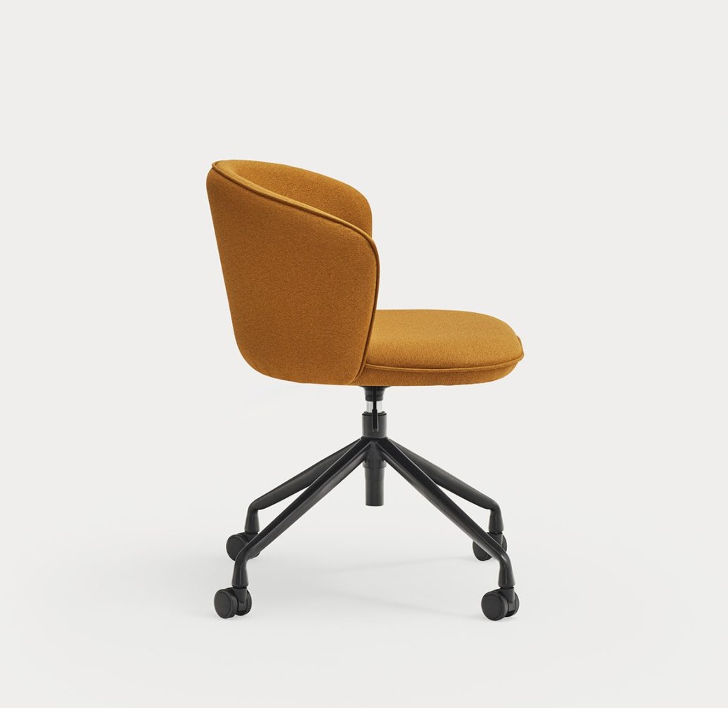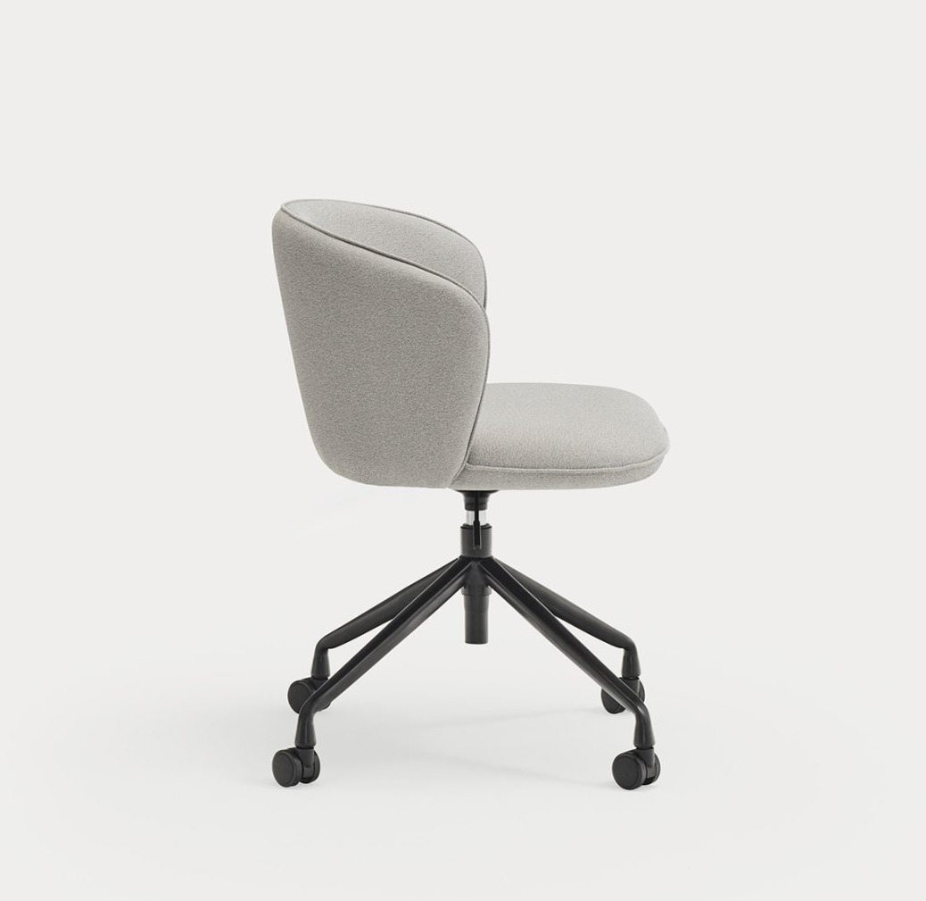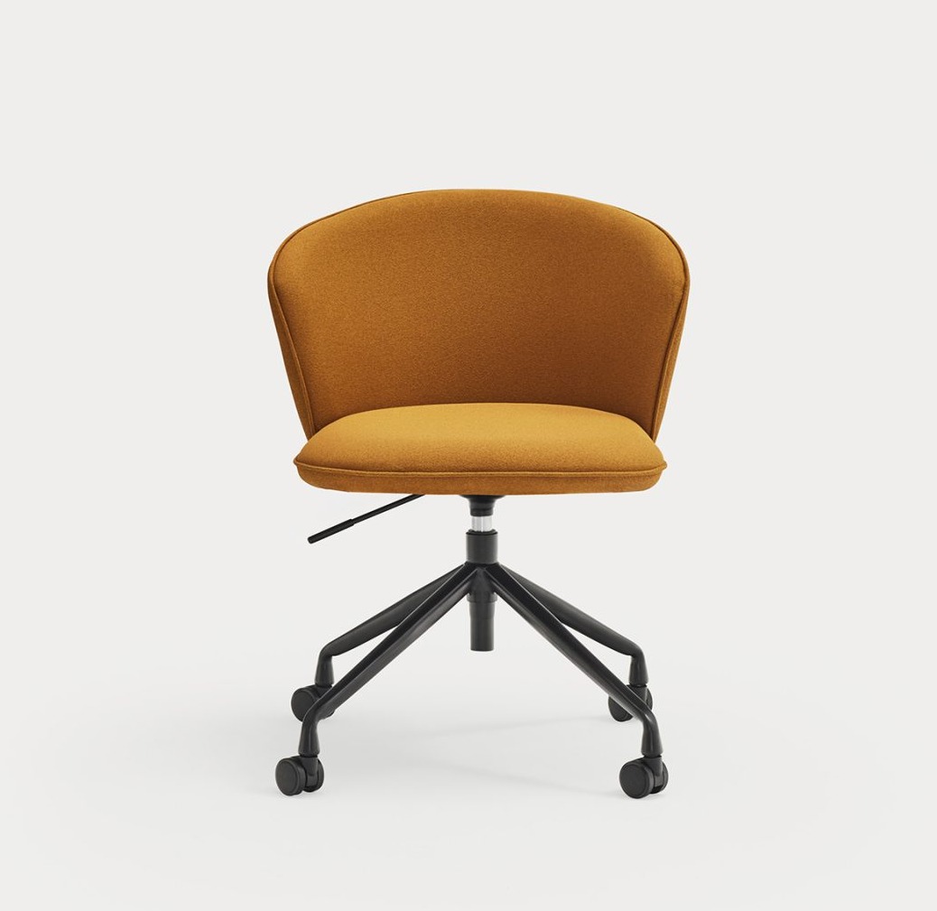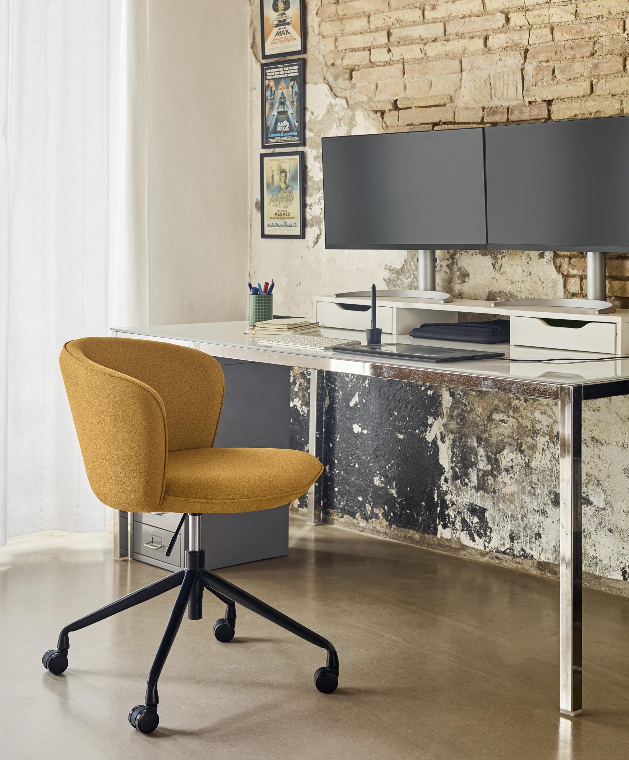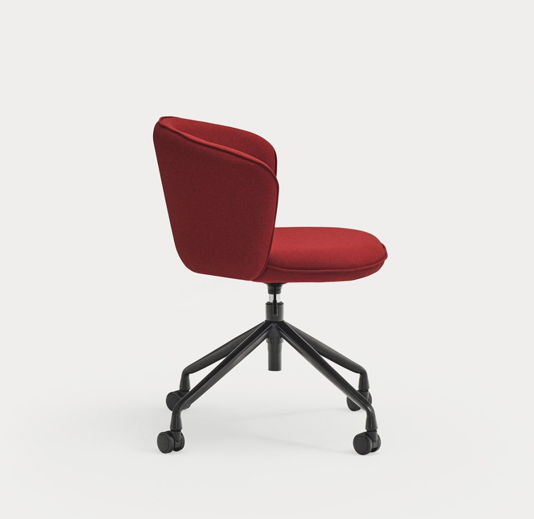 Silla de oficina tapizada ADD. El confort y la ergonomía son los puntos claves de los que parte la silla Add. El respaldo completamente tapizado nos rodea al sentarnos, abrazando la curvatura natural del cuerpo, pero permite cambiar de postura y movernos con libertad en él gracias a la amplitud de su asiento.