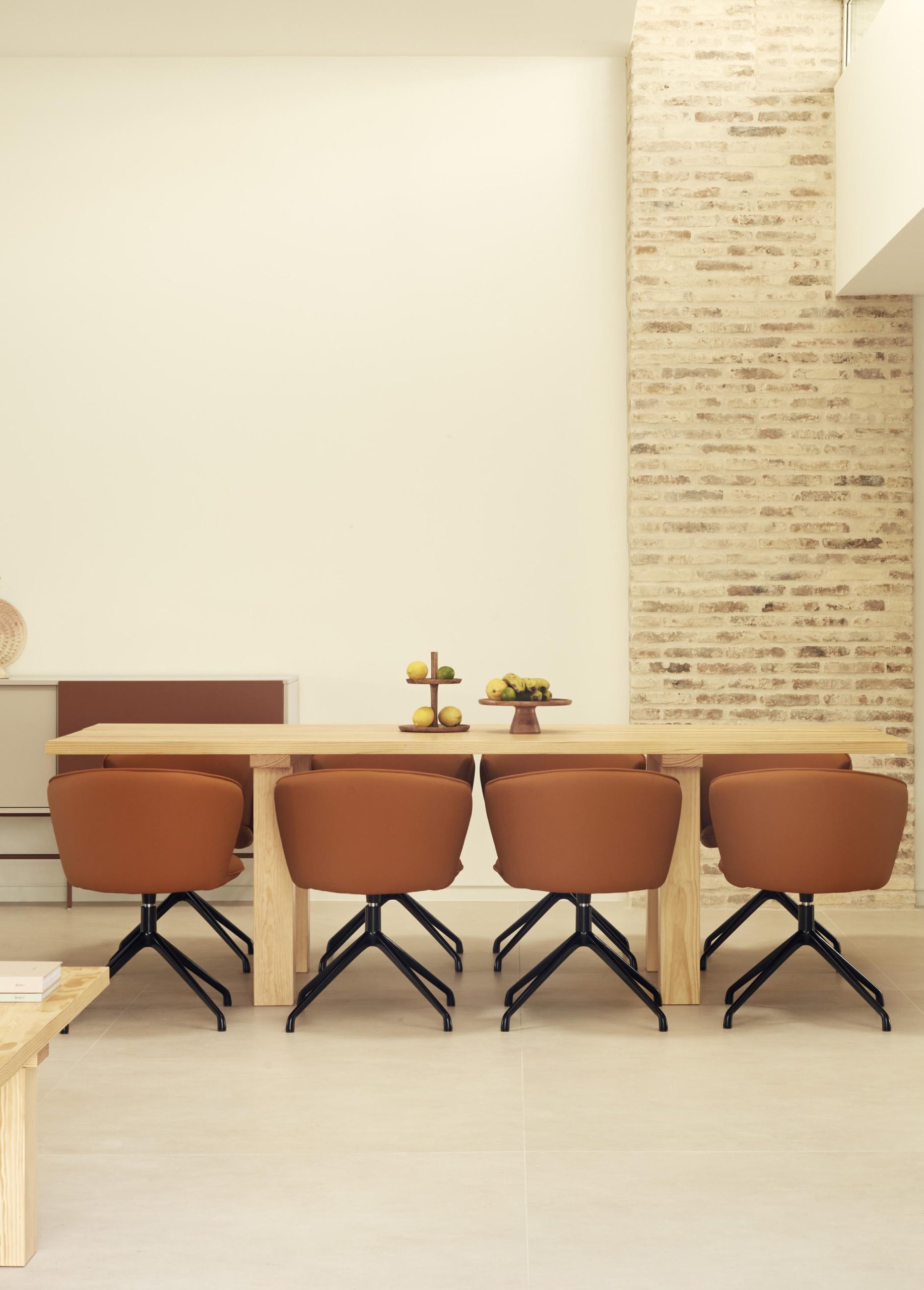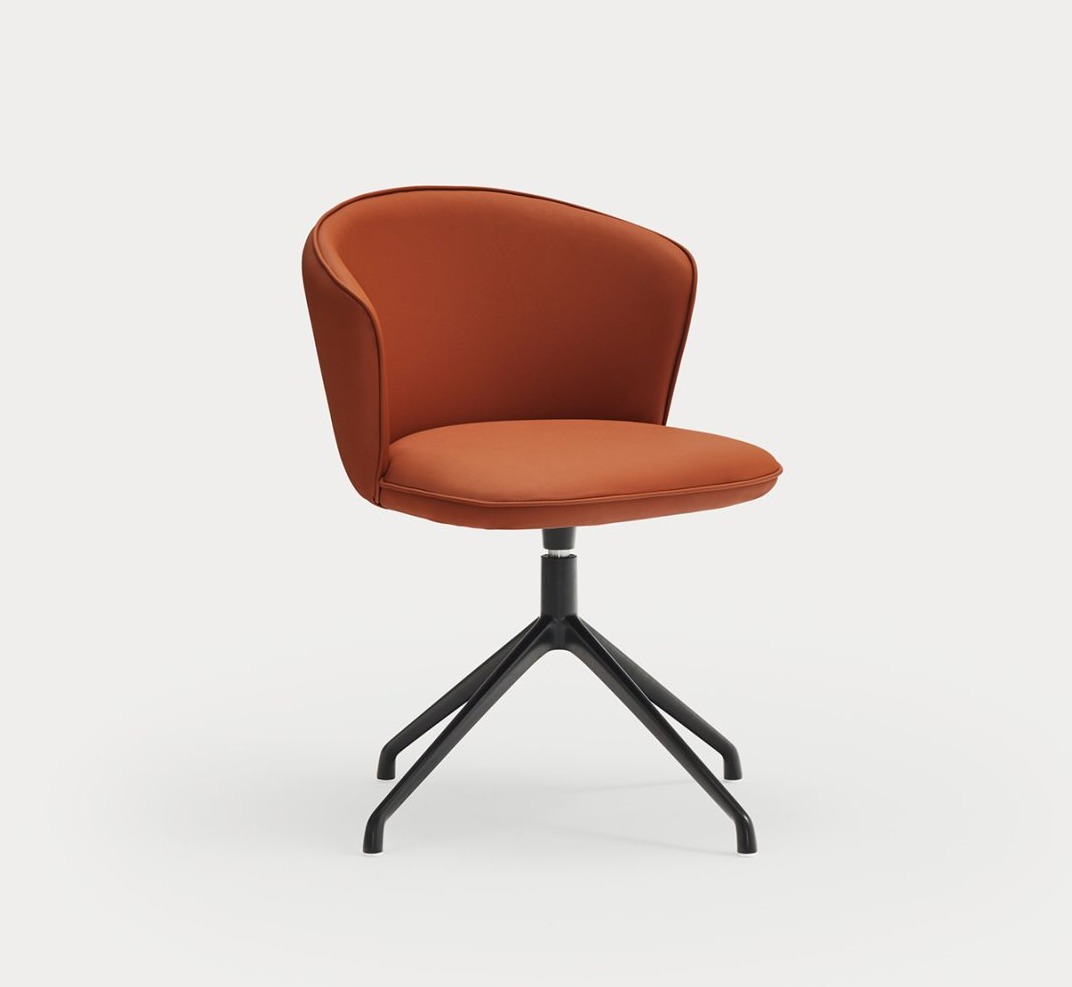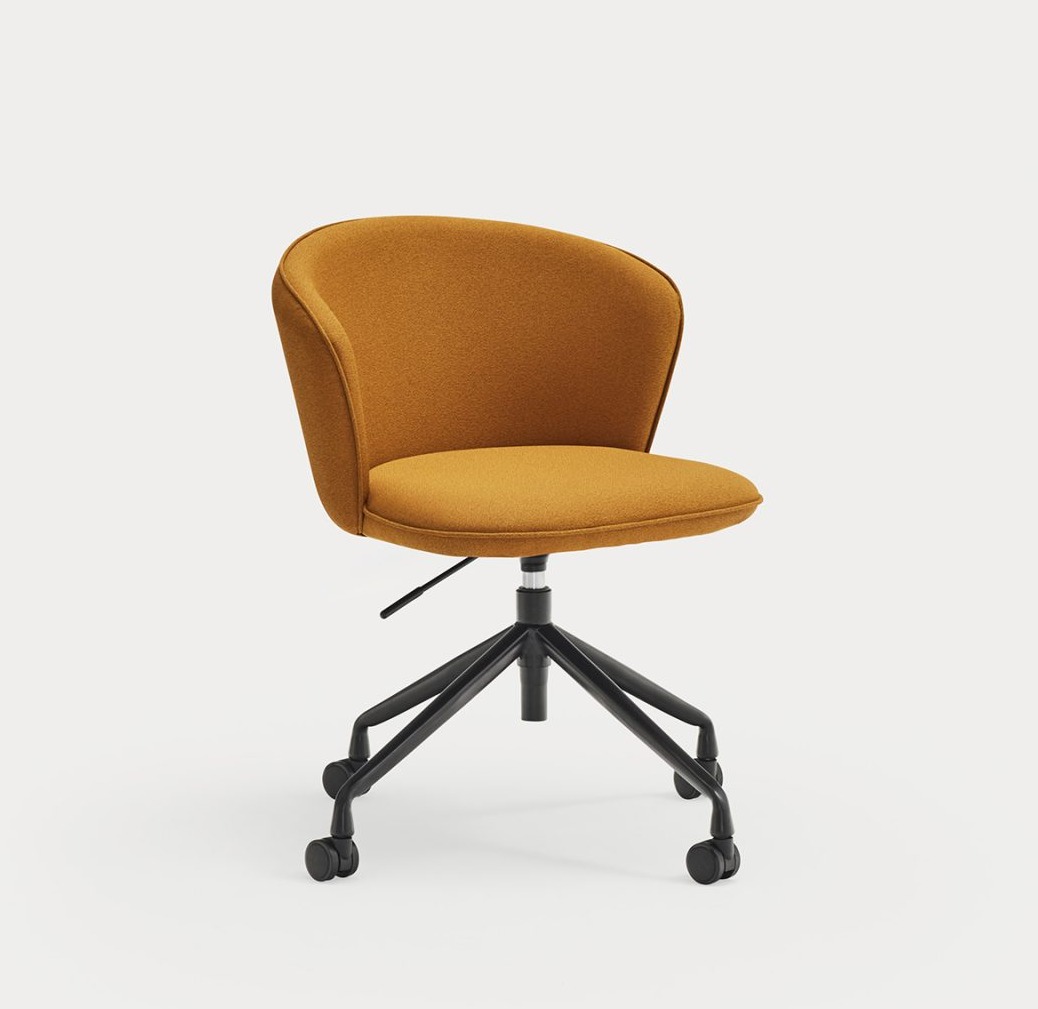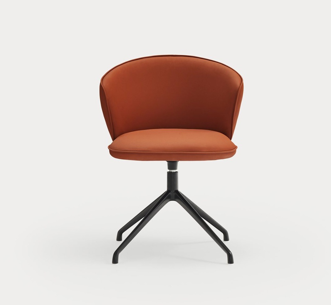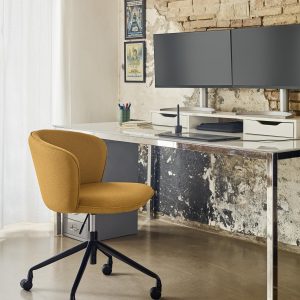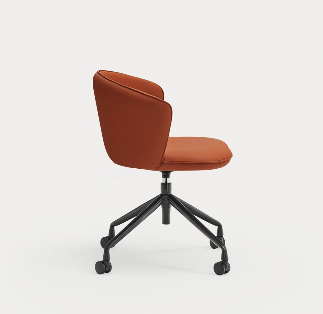 Silla de oficina tapizada ADD. El confort y la ergonomía son los puntos claves de los que parte la silla Add. El respaldo completamente tapizado nos rodea al sentarnos, abrazando la curvatura natural del cuerpo, pero permite cambiar de postura y movernos con libertad en él gracias a la amplitud de su asiento.