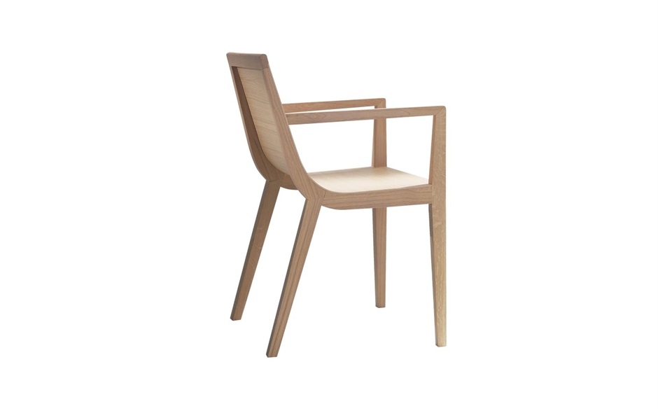- Sillón con asiento y respaldo de tablero de roble y estructura de madera maciza de roble.