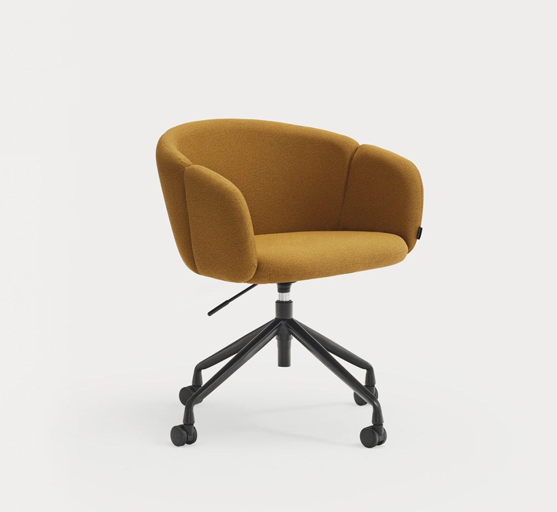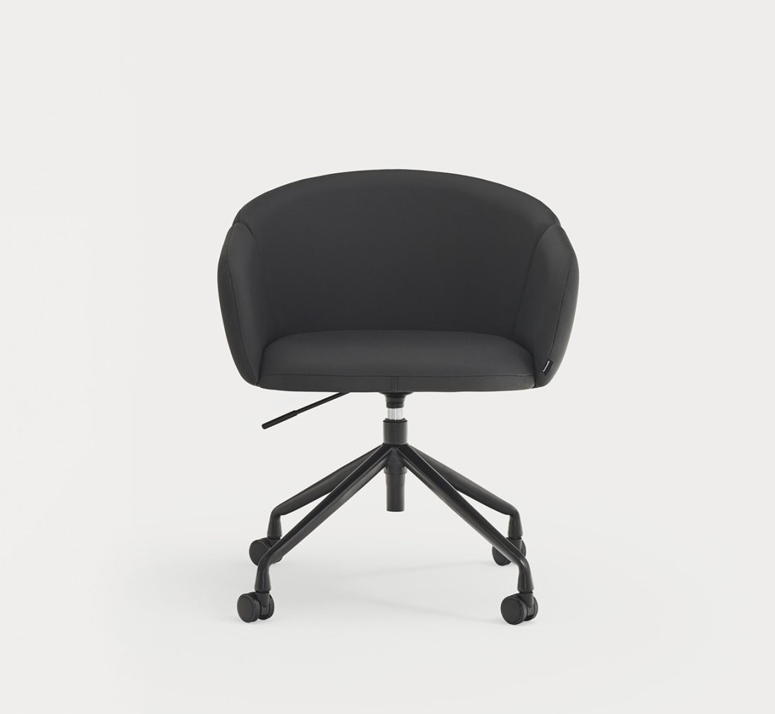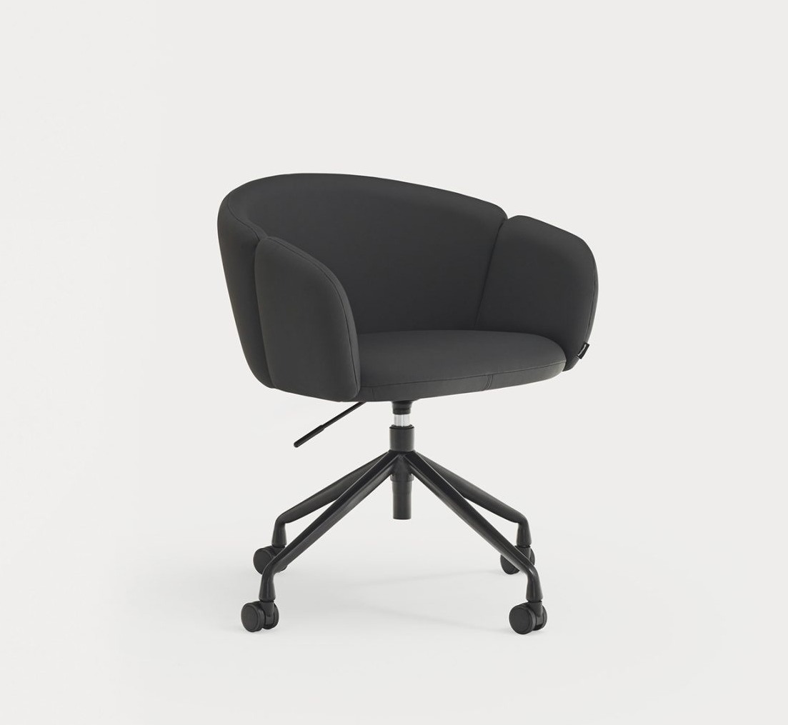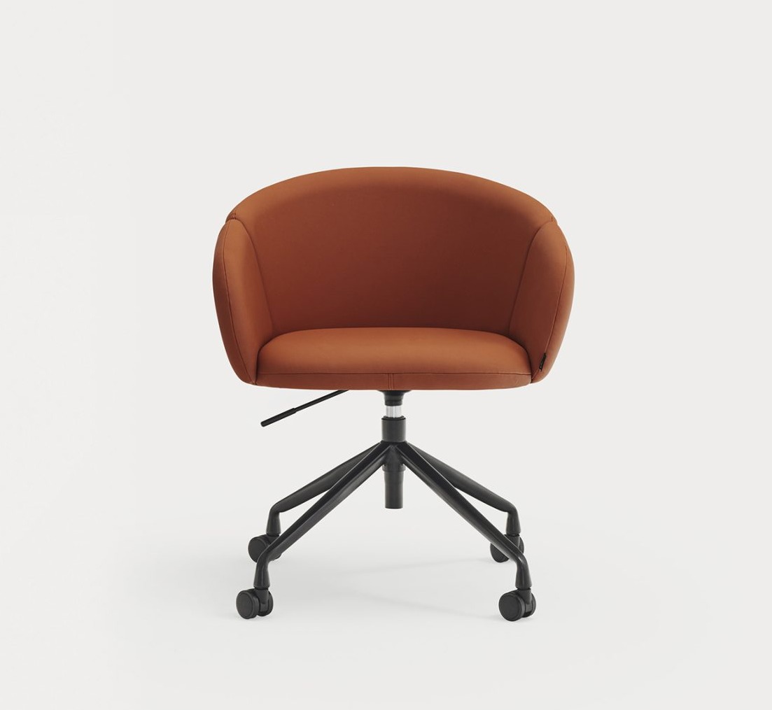 Sillón de oficina tapizado ADD. El confort y la ergonomía son los puntos claves de los que parte el sillón de oficina Add. El respaldo completamente tapizado nos rodea al sentarnos, abrazando la curvatura natural del cuerpo, pero permite cambiar de postura y movernos con libertad en él gracias a la amplitud de su asiento. Los reposabrazos, la base giratoria y la regulación en altura, además de la opción de añadir ruedas, son el extra perfecto para una sillón de oficina, escritorio perfecto.