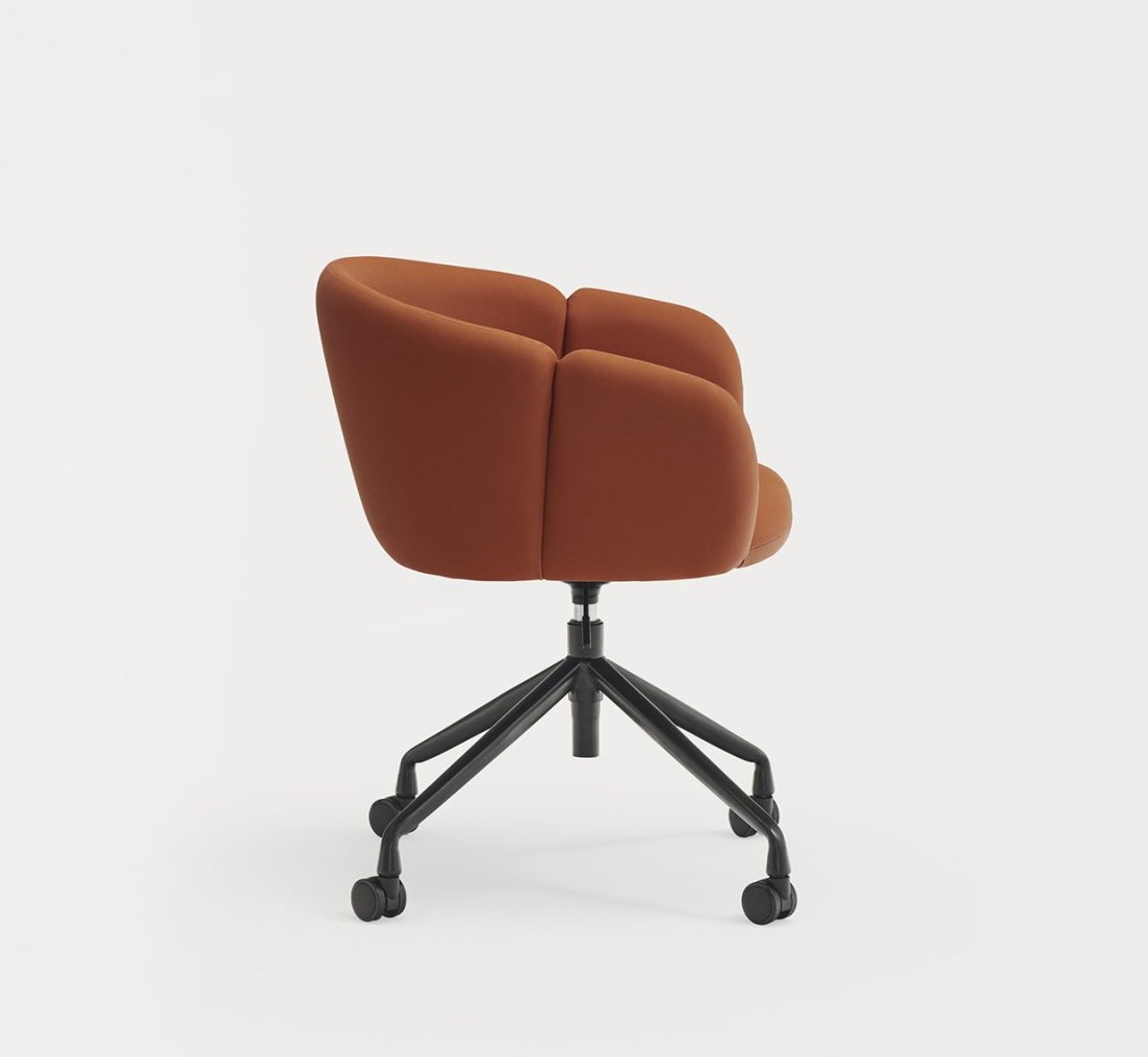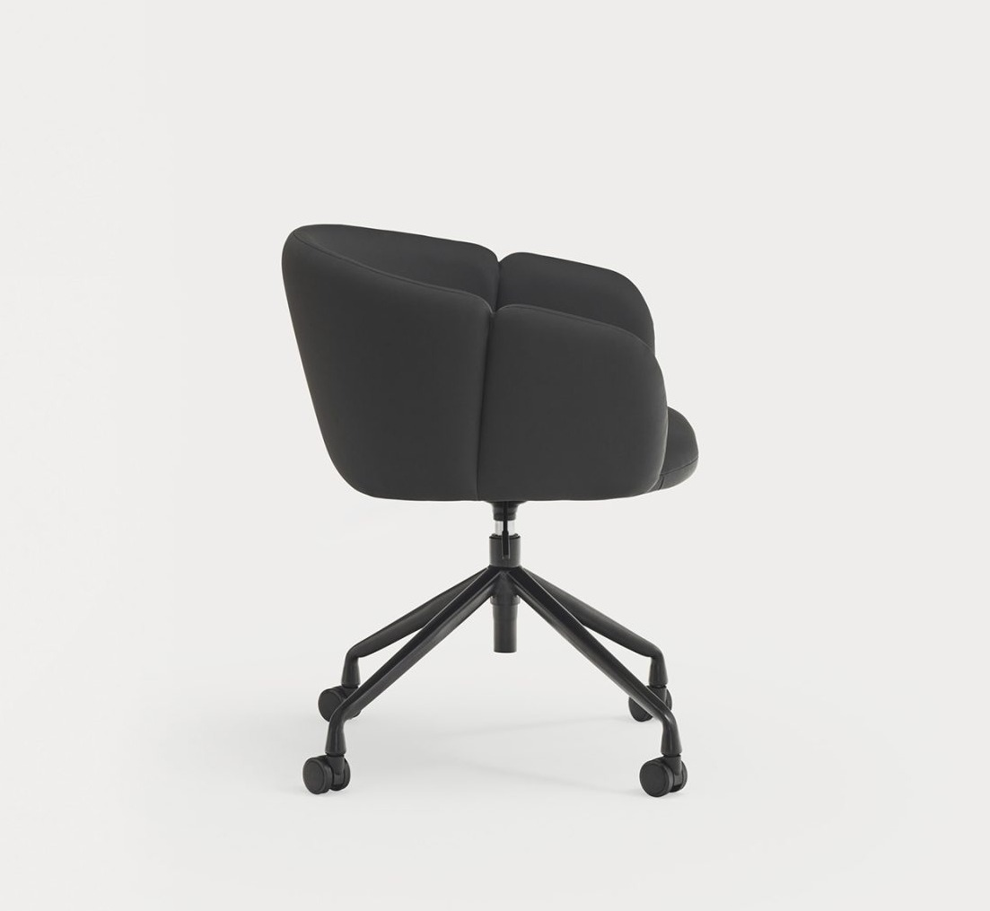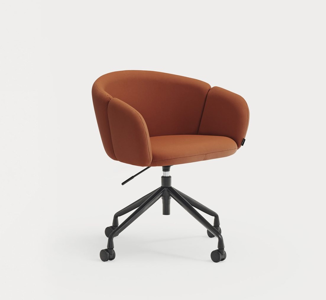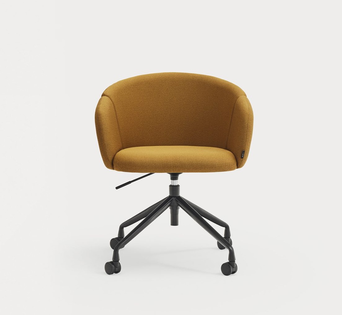 Sillón de oficina tapizado ADD. El confort y la ergonomía son los puntos claves de los que parte el sillón de oficina Add. El respaldo completamente tapizado nos rodea al sentarnos, abrazando la curvatura natural del cuerpo, pero permite cambiar de postura y movernos con libertad en él gracias a la amplitud de su asiento. Los reposabrazos, la base giratoria y la regulación en altura, además de la opción de añadir ruedas, son el extra perfecto para una sillón de oficina, escritorio perfecto.