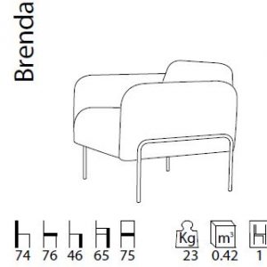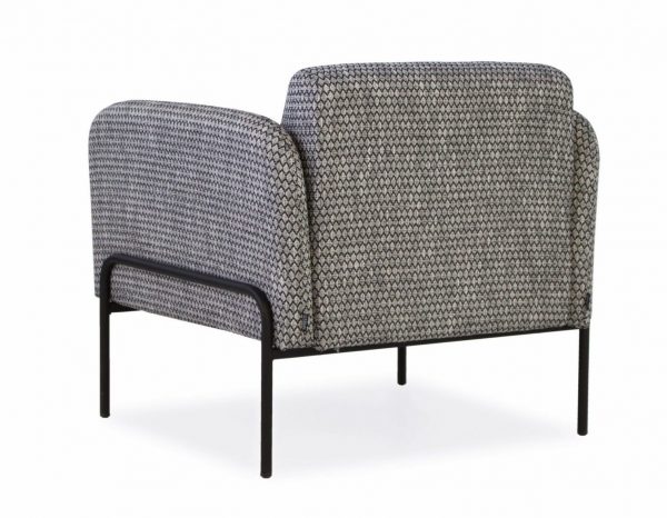 Sillón Brenda. Brenda es una butaca de líneas curvas y suaves tanto en su pie metálico como en su cuerpo tapizado.