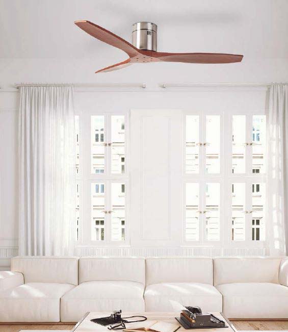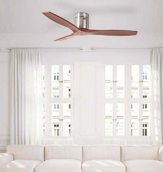 - Función inversa. Hace girar las palas en sentido contrario. Durante los meses de frío, permite desplazar el aire caliente desde el techo hacia el suelo y calentar la estancia ahorrando energía usándolo con el sistema de calefacción.